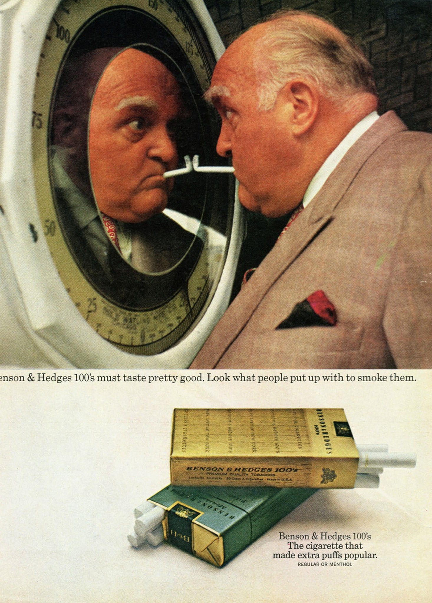 1970 Benson & Hedges 100’s must taste pretty good. Look what people put up with to smoke them