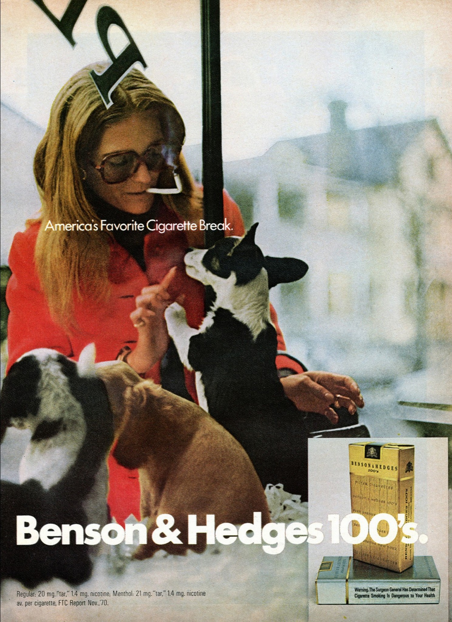 1971 America's Favorite Cigarette Break. Benson & Hedges 100's