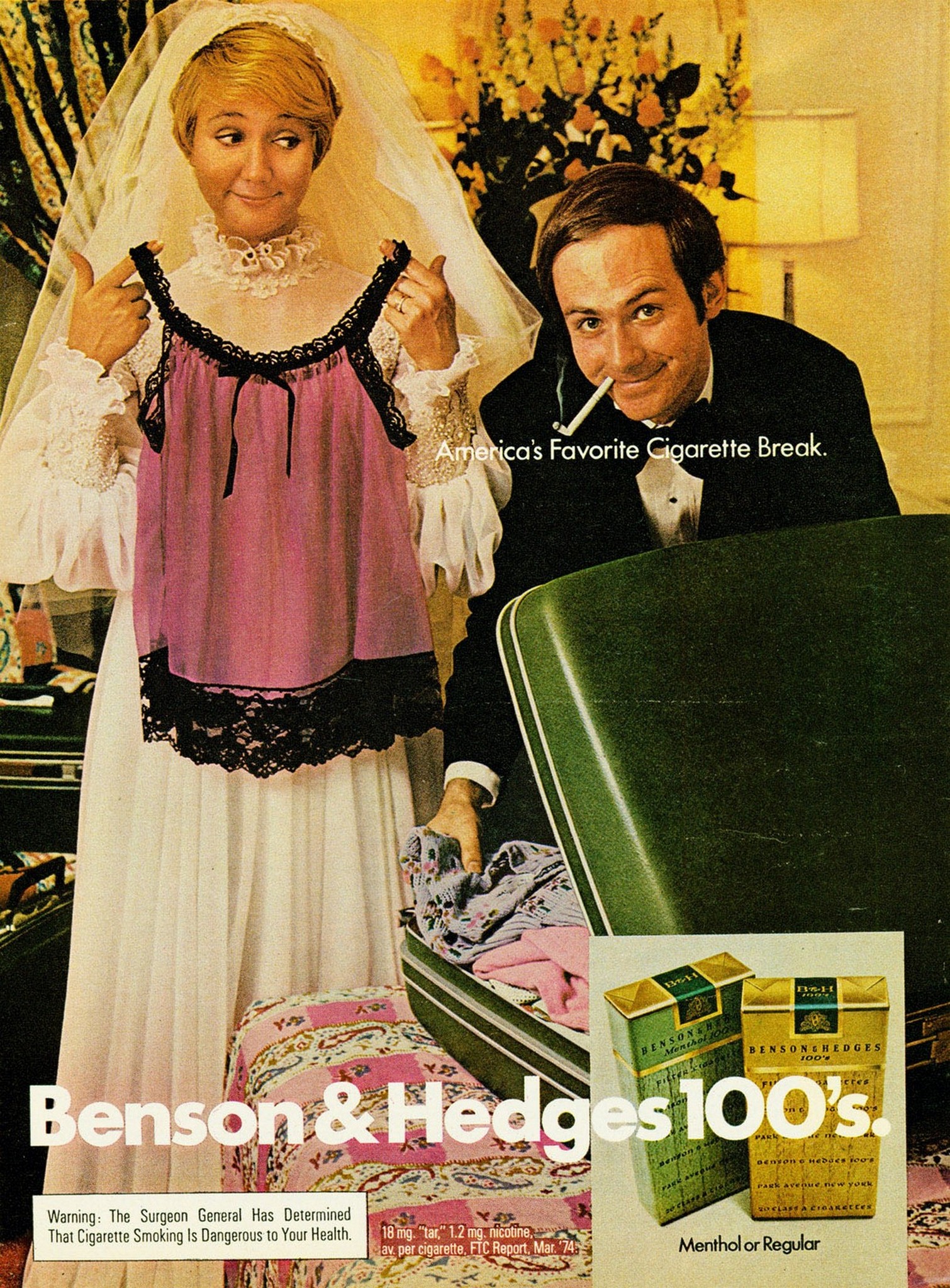 1974 America’s Favorite Cigarette Break. Benson & Hedges 100’s (3) 1