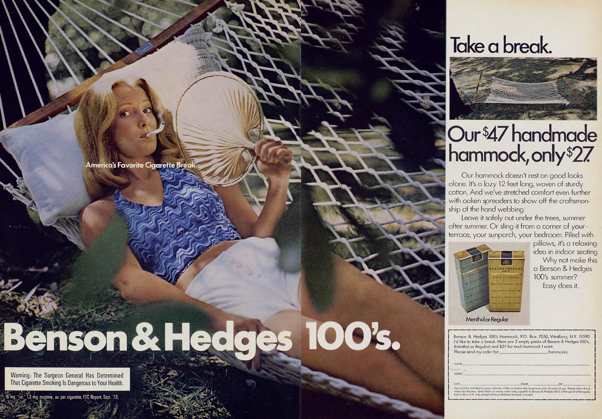 1974 America’s Favorite Cigarette Break. Benson & Hedges 100’s