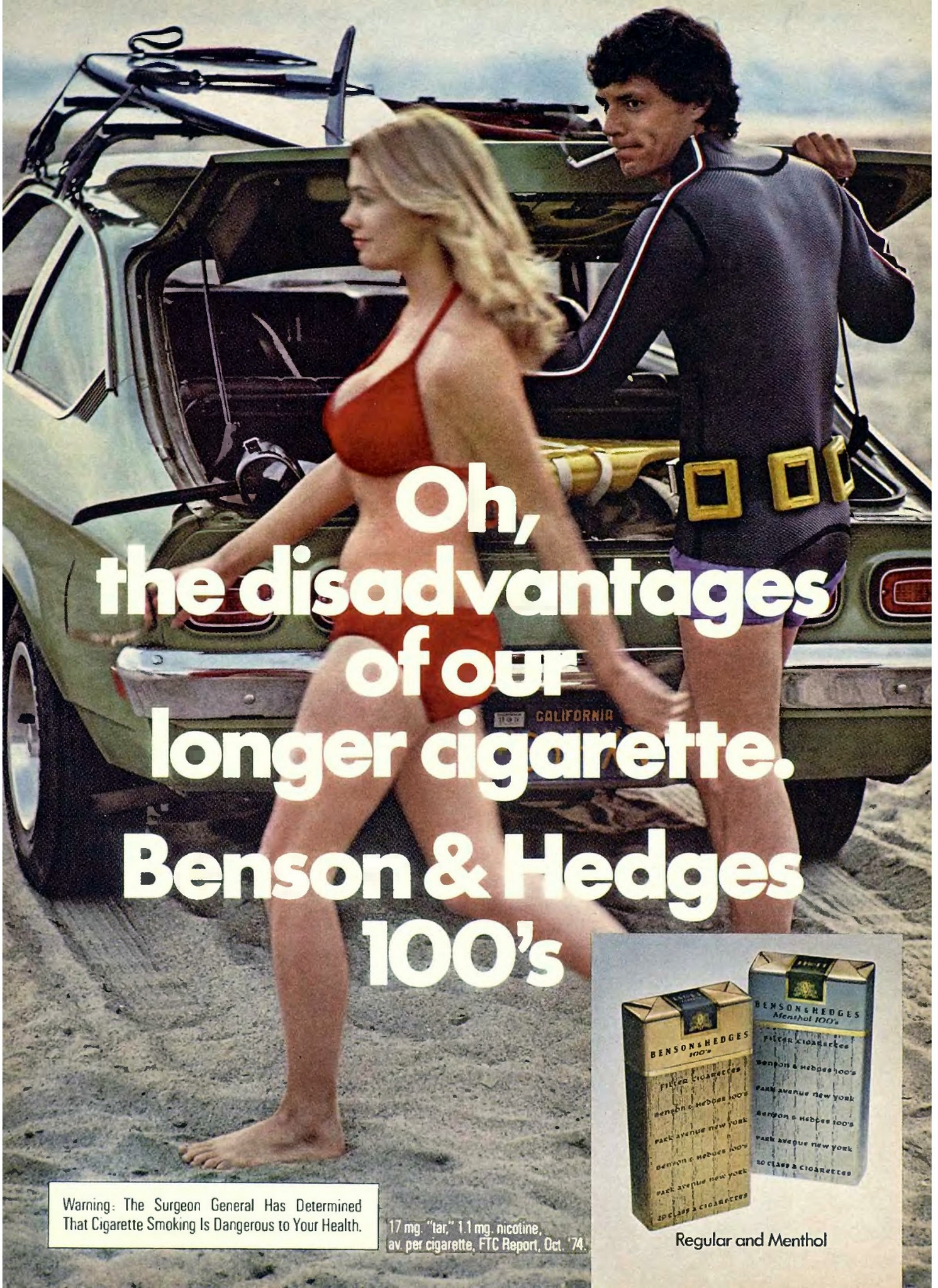 1975 Oh, the disadvantages of our longer cigarette. Benson & Hedges 100's (2)