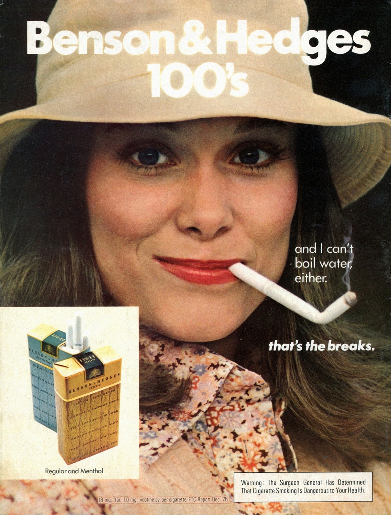 1976 Benson & Hedges 100's and I can't boil water, either. that's the breaks