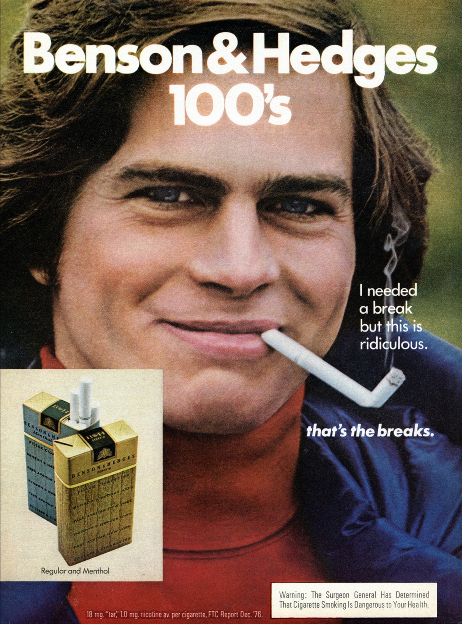 1976 Benson & Hedges 100's I needed a break but this is ridiculous. that's the breaks