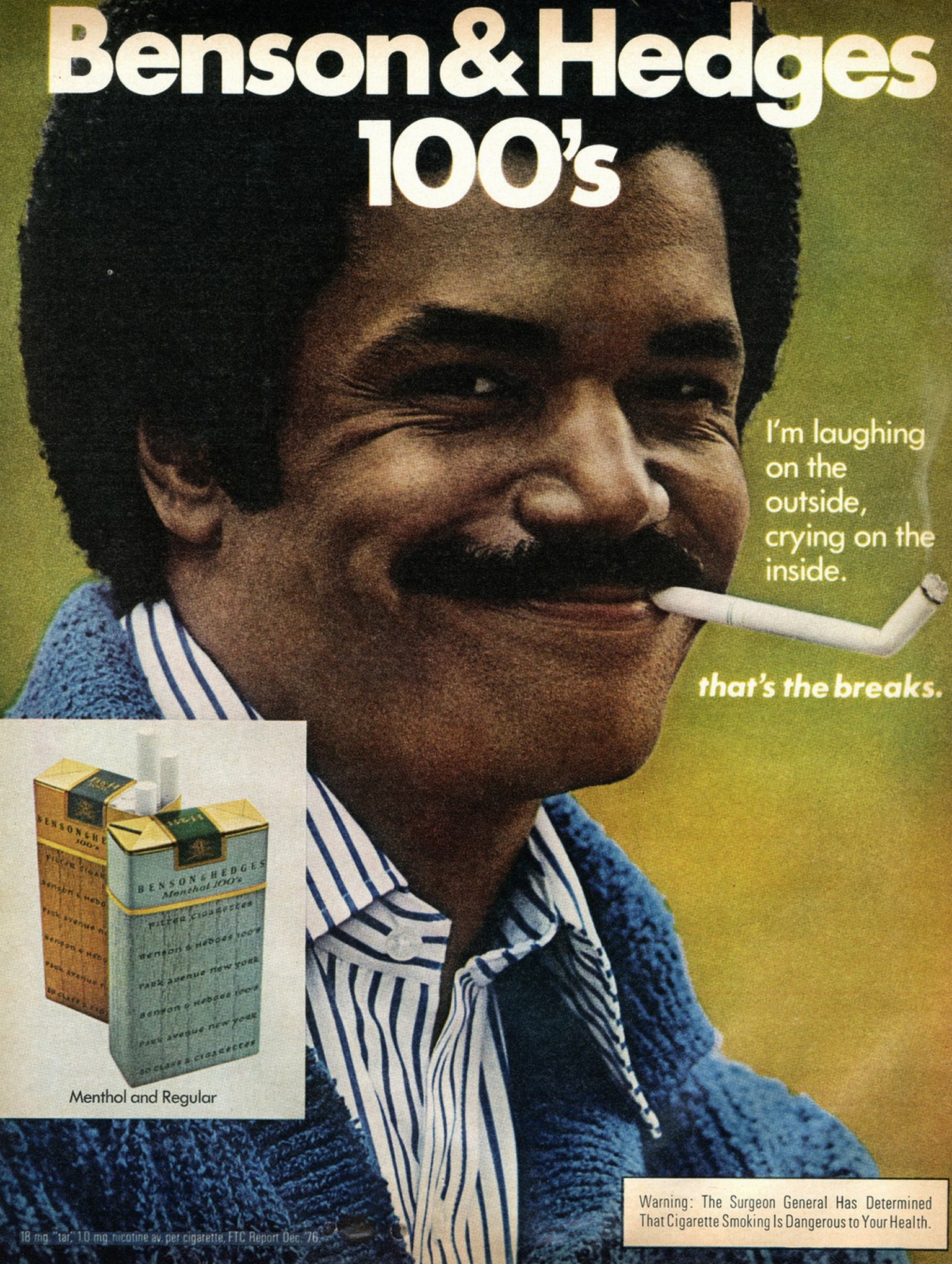 1976 Benson & Hedges 100's I'm laughing on the outside, crying on the inside. that's the breaks