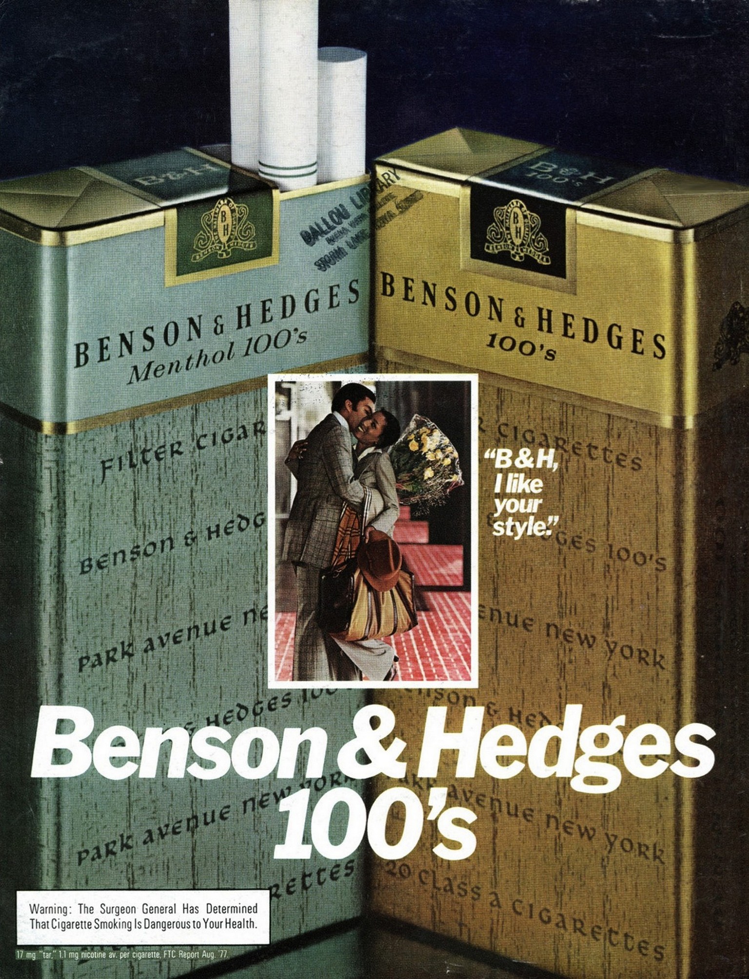 1978 ‘B&H, I like your style’ Benson & Hedges 100’s