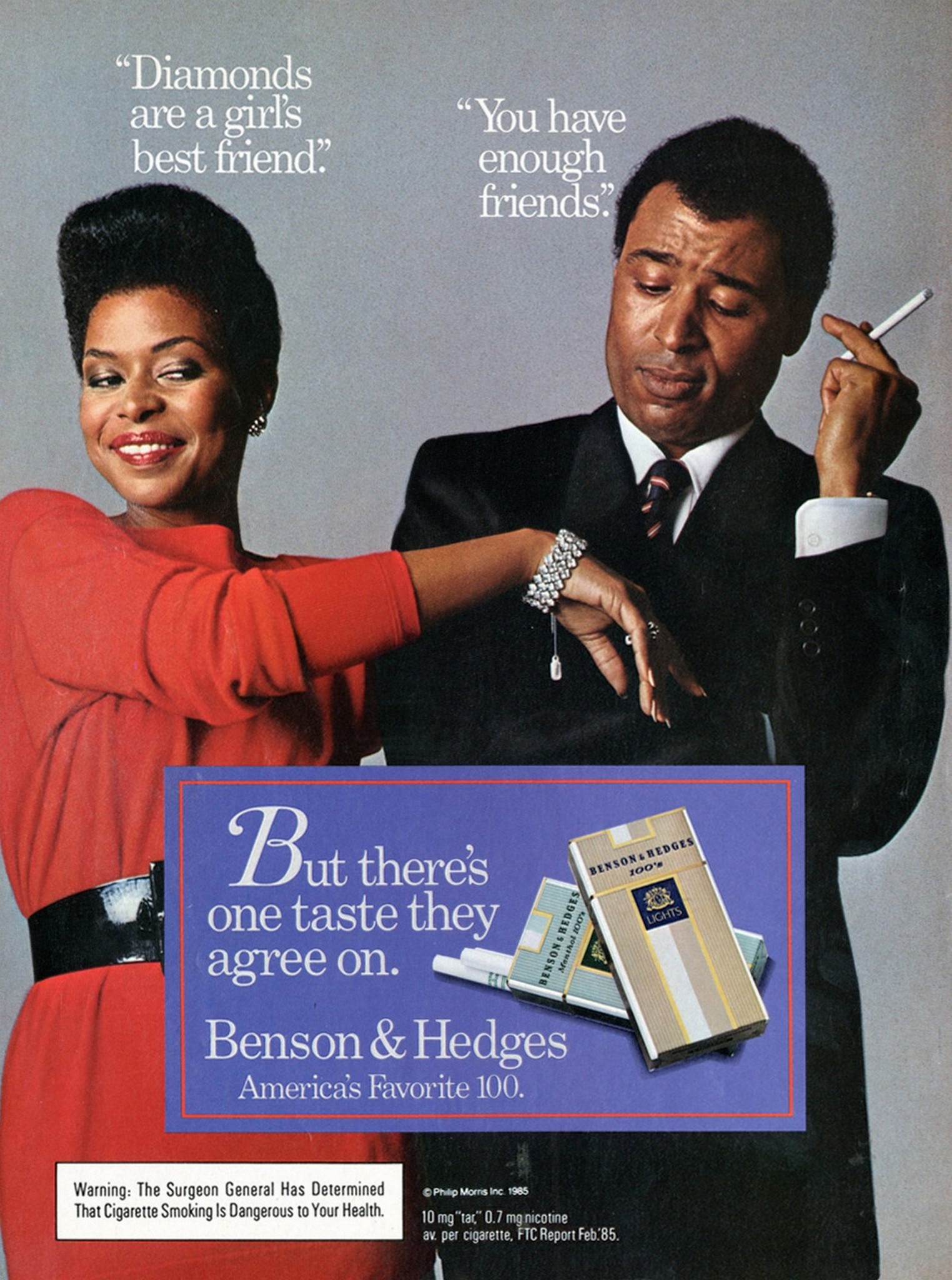 1985 ‘Diamonds are a girl’s best friend.’ ‘You have enough friends’ But there’s one taste they agree on. Benson & Hedges