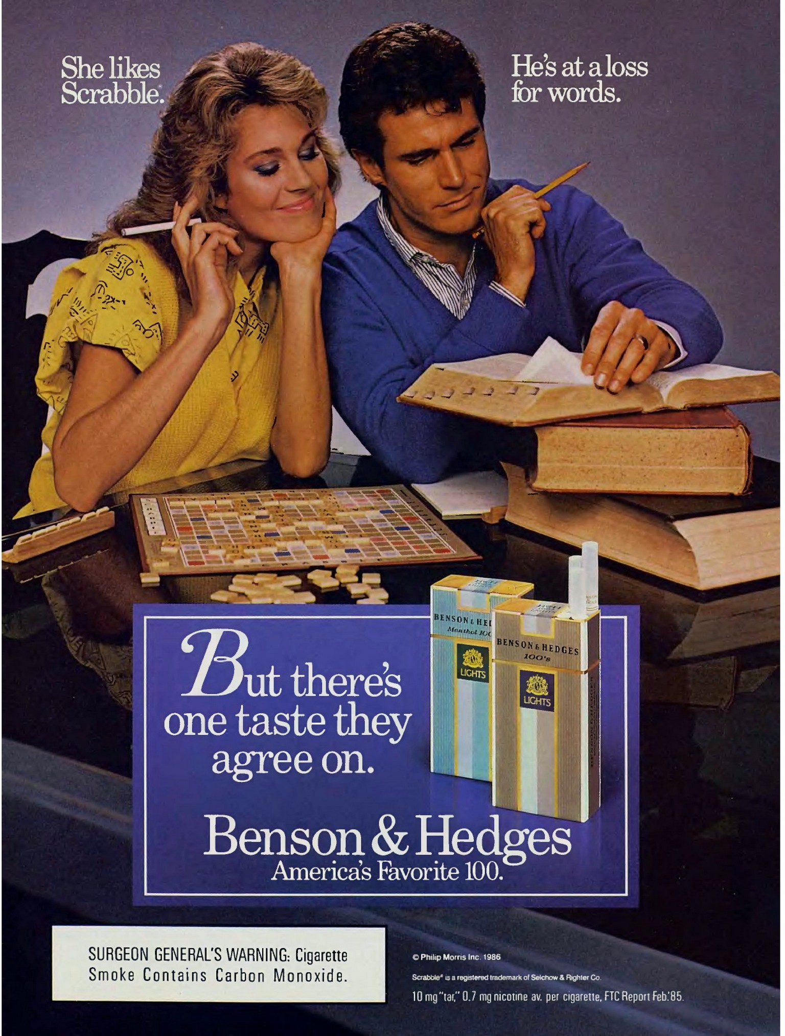 1986 She likes.. He's at... But there's one taste they agree on. Benson & Hedges