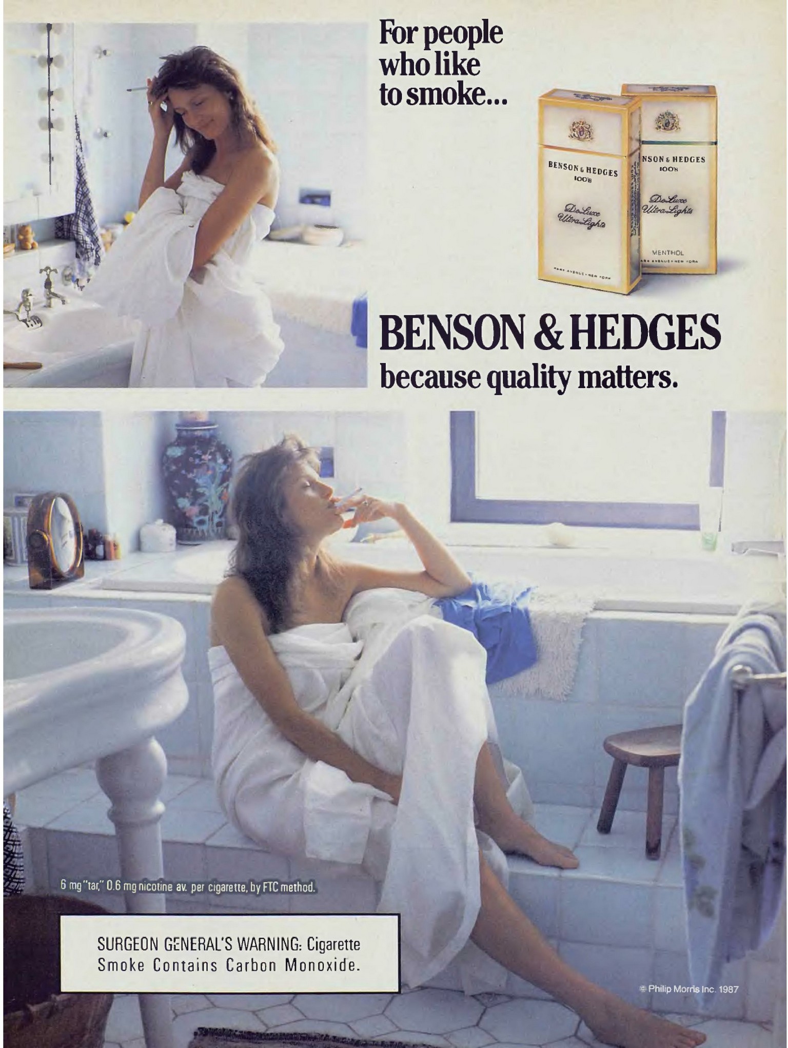 1987 For people who like to smoke… Benson & Hedges because quality matters. 4