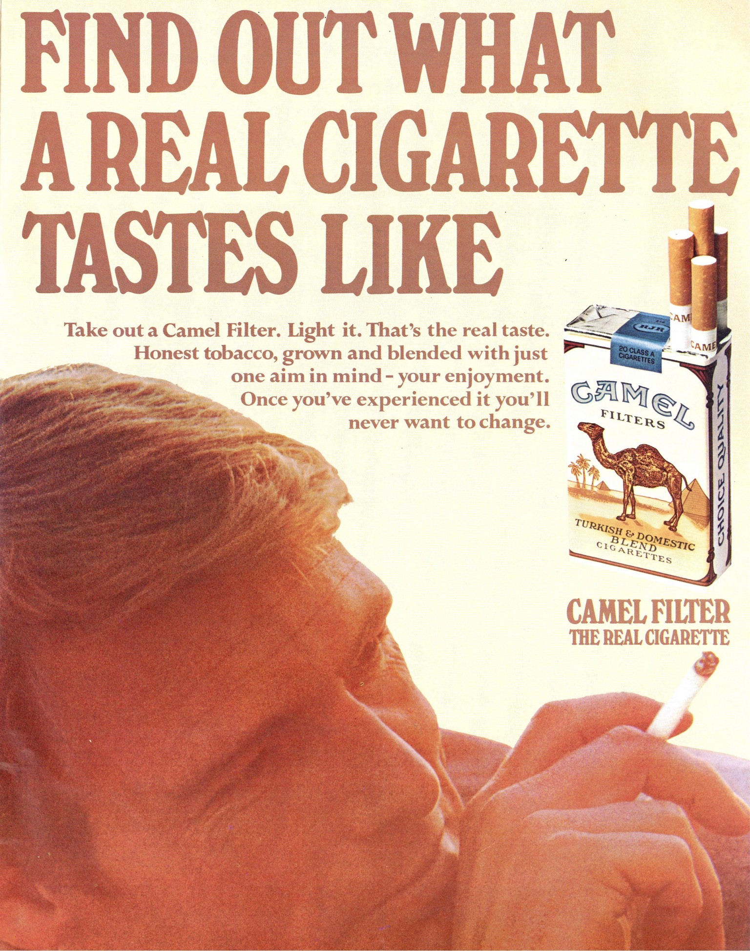 1969 Find Out What A Real Cigarette Tastes Like. Camel