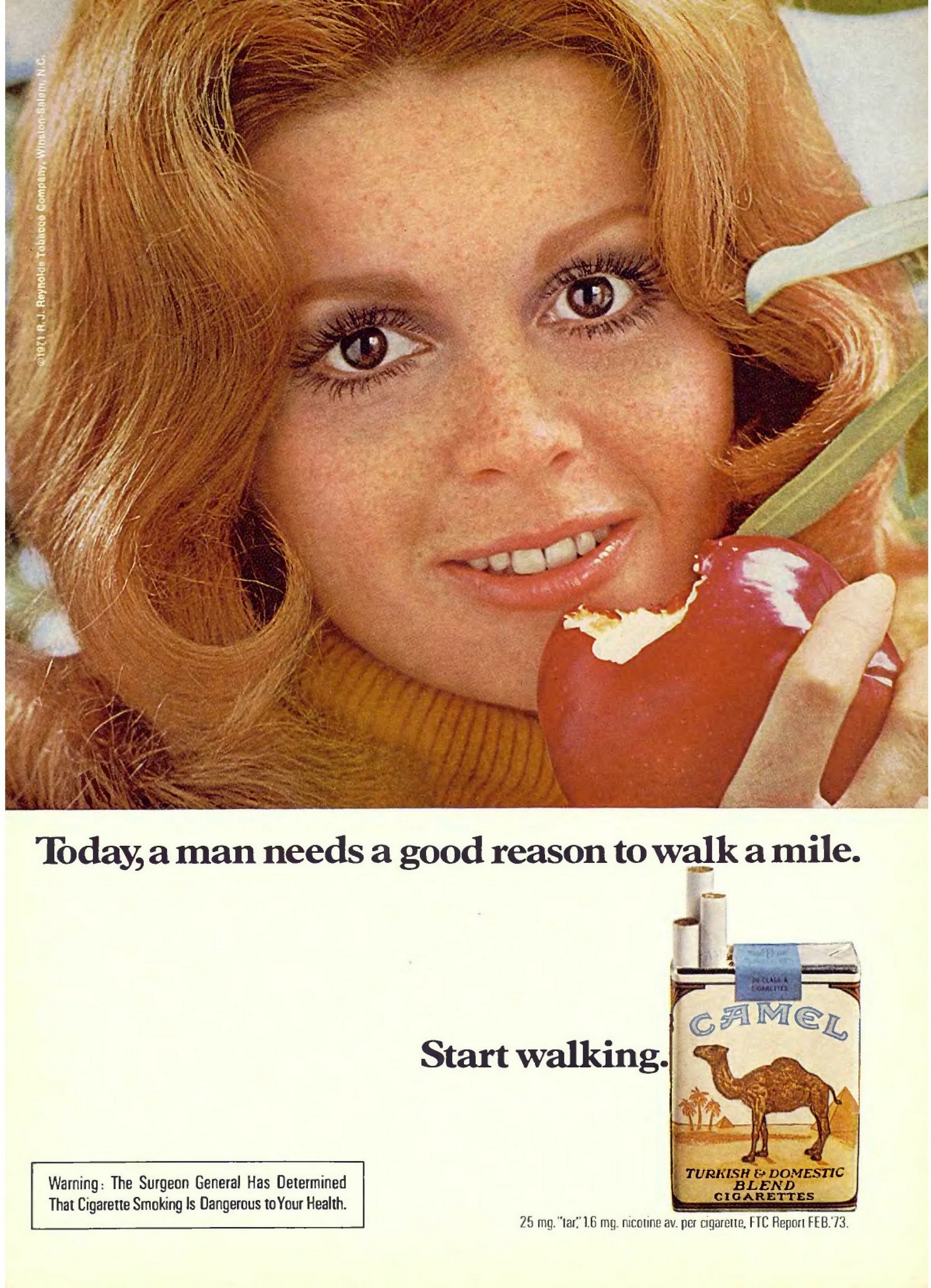 1973 Today, a man needs a good reason to walk a mile. Start walking. Camel
