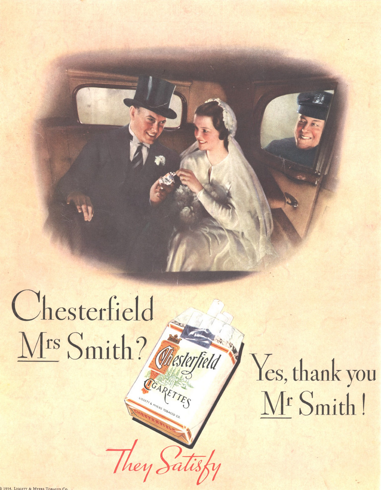 1934 Chesterfield Mrs Smith. Yes, thank you Mr Smith! They Satisfy Source: Stanford School of Medicine
