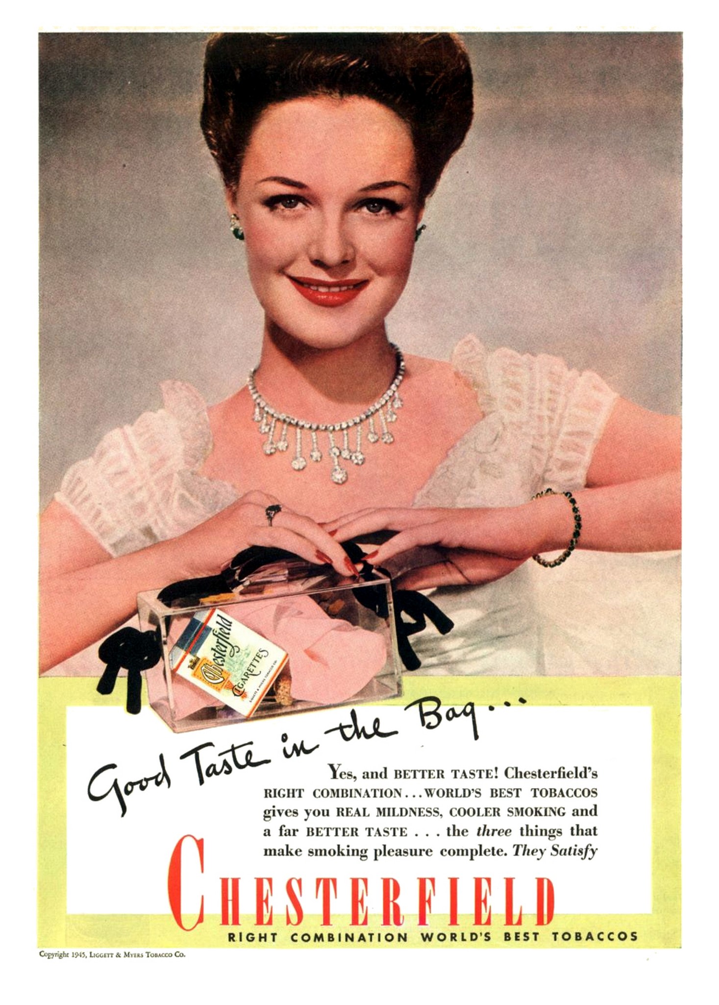 Main » Smoking » Chesterfield Ad and Poster Collection » 1945 Good Taste in the Bag… Chesterfield