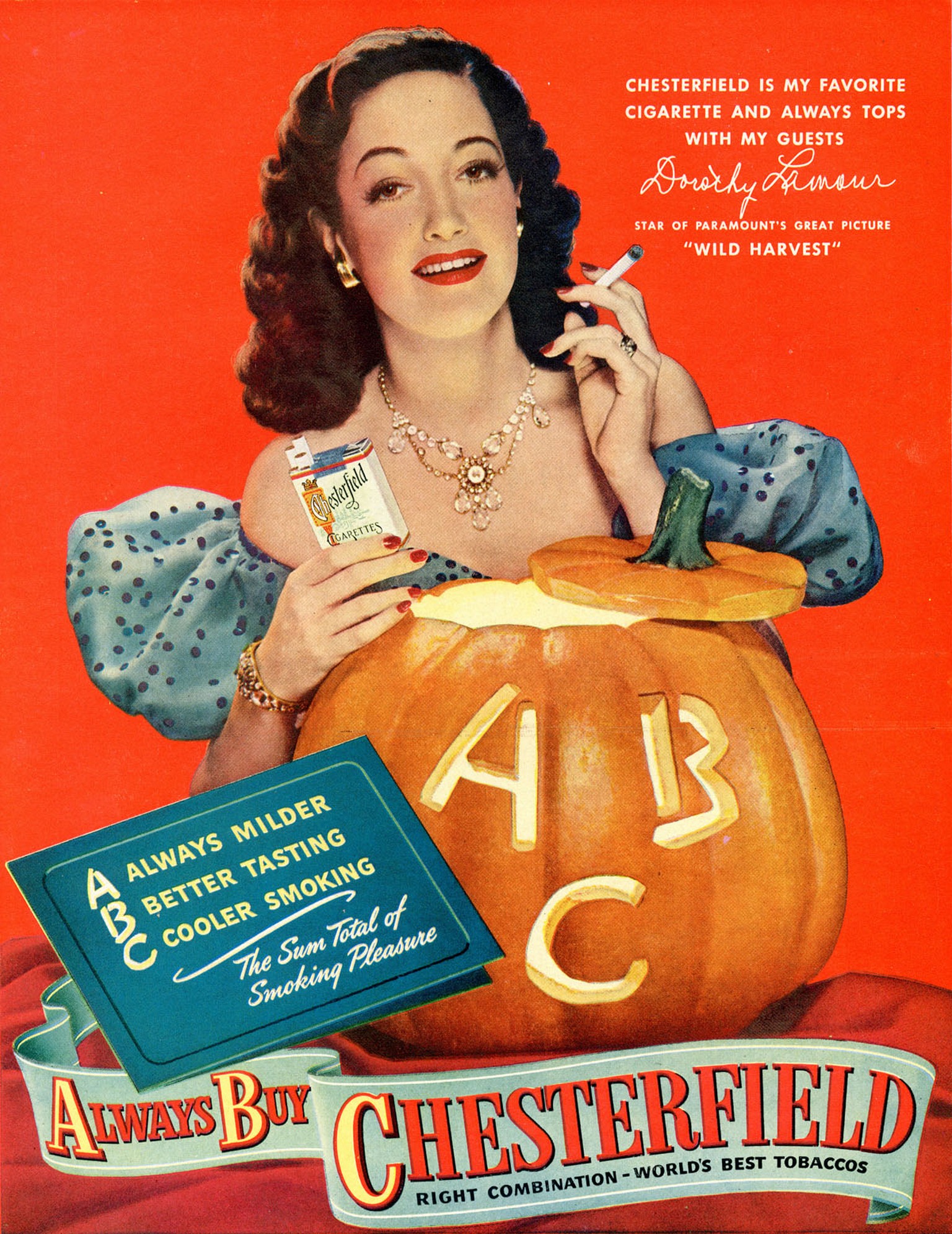 1947 Chesterfield Is My Favorite Cigarette And Always Tops With My Guest. Dorothy Lamour