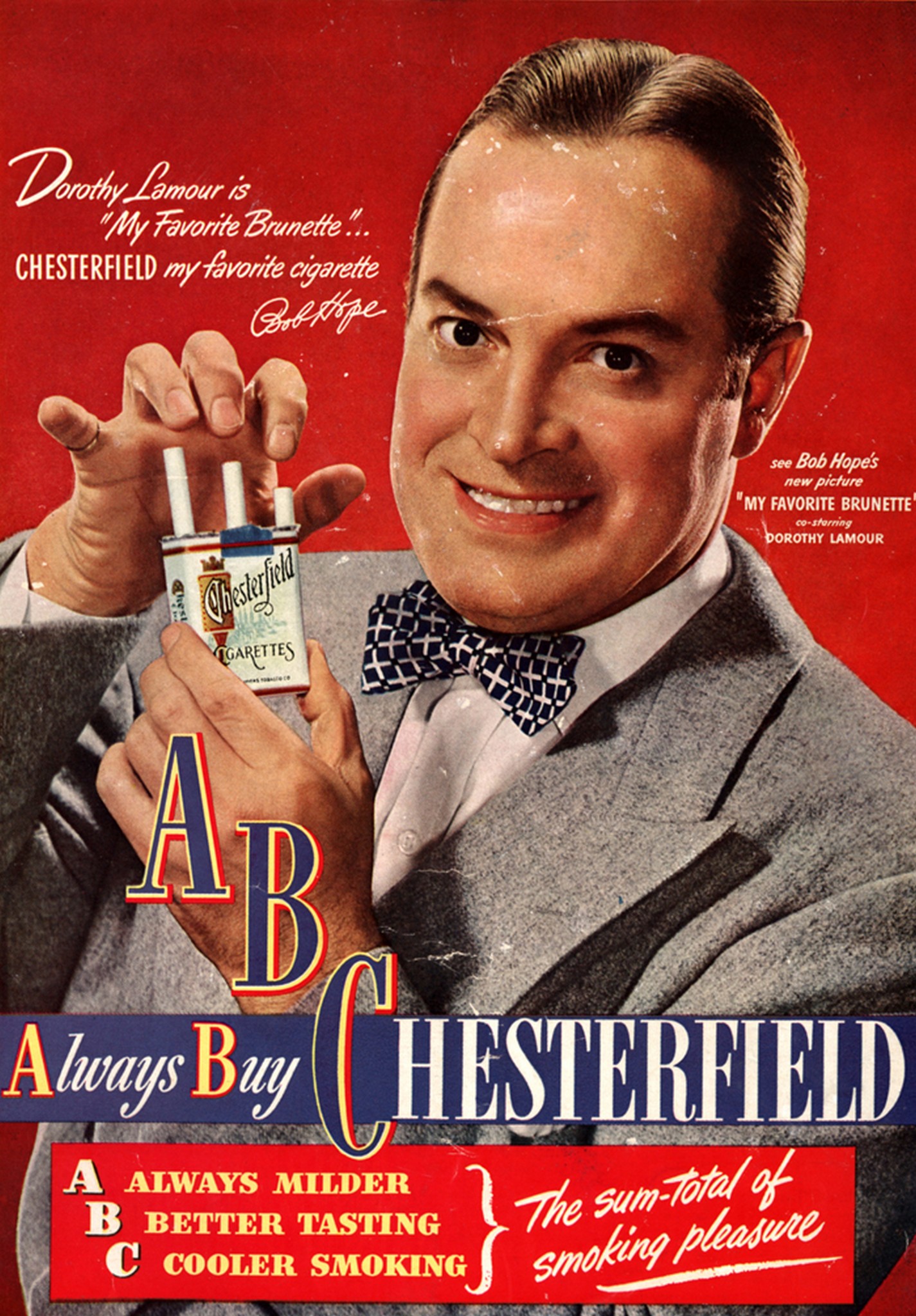 Main » Smoking » Chesterfield Ad and Poster Collection » 1947 Dorothy Lamos is ‘My Favorite Brunette’… Chesterfield my favorite cigarette. Bob Hope