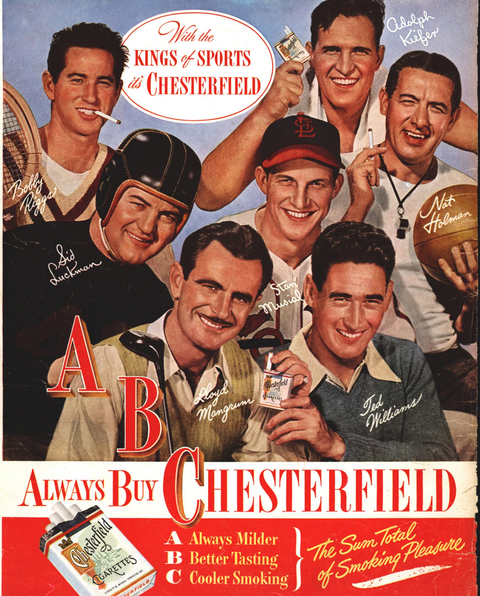 Main » Smoking » Chesterfield Ad and Poster Collection » 1947 With the Kings & Sports it’s Chesterfield