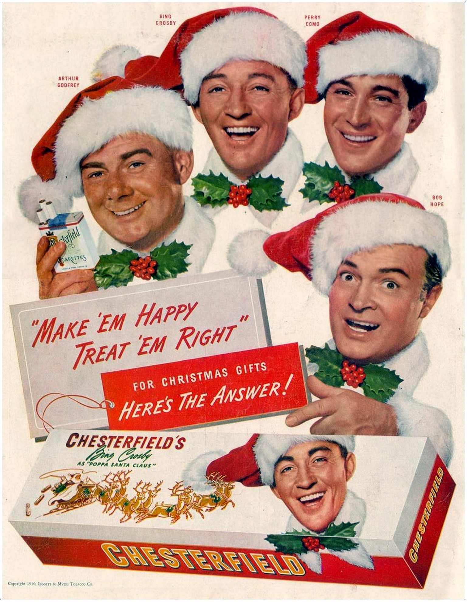 Main » Smoking » Chesterfield Ad and Poster Collection » 1950 Arthur Godfrey, Bing Crosby, Perry Como, Bob Hope, Chesterfield