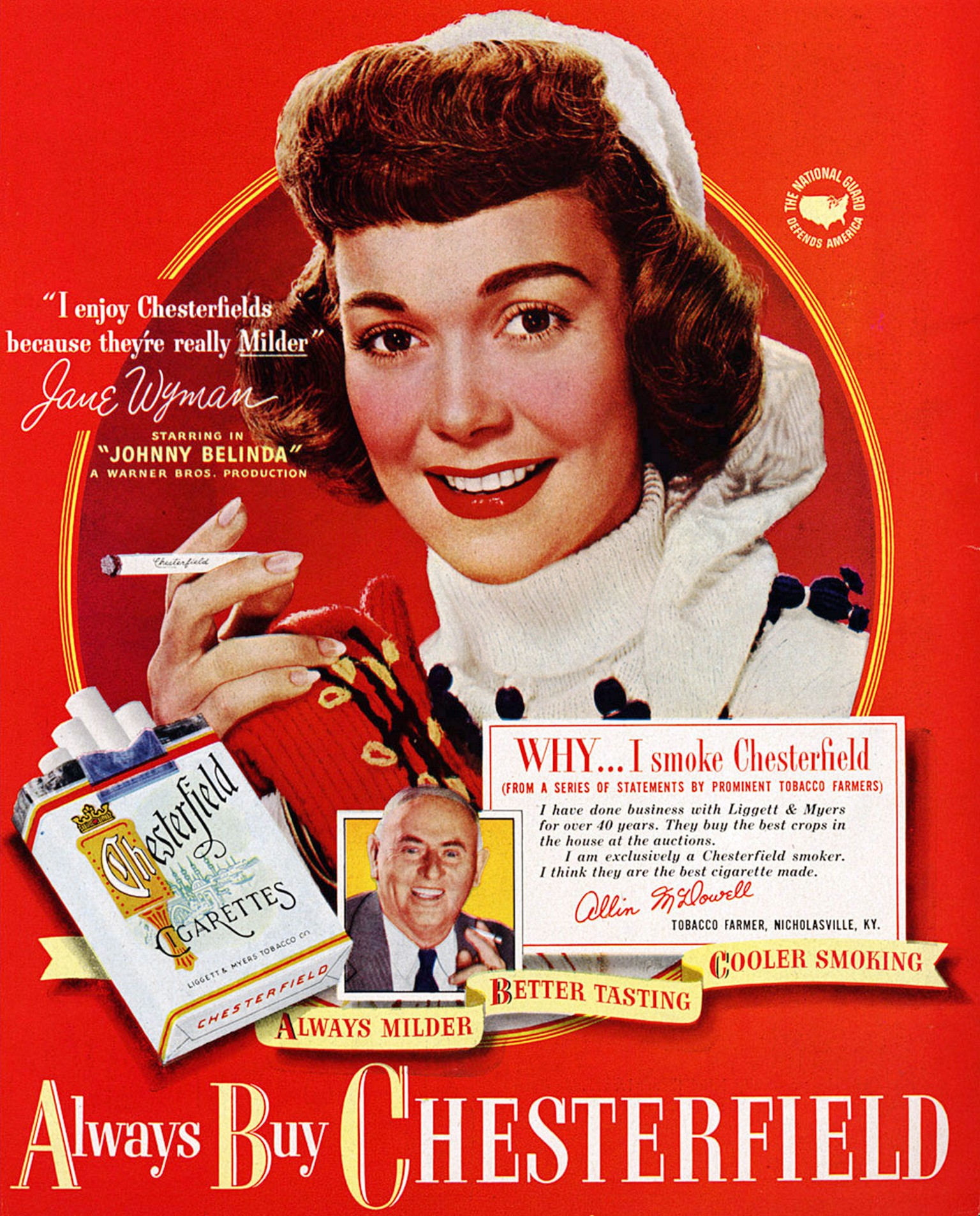 1950 ‘I enjoy Chesterfields because they’re really Milder’ Jane Wyman Source: Stanford School of Medicine