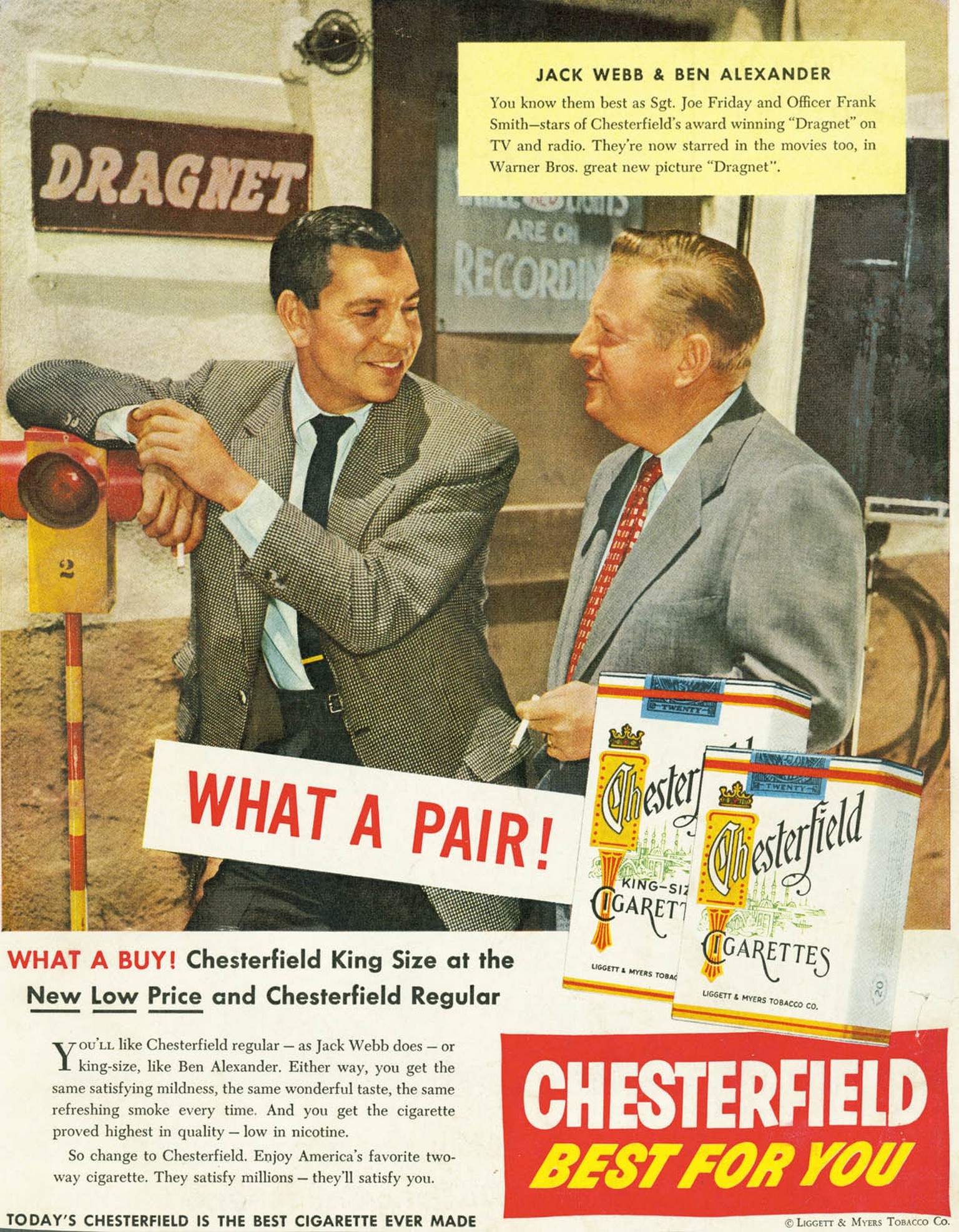1950 Jack Webb & Ben Alexander. What A Pair! Chesterfield Best For You Source: Stanford School of Medicine