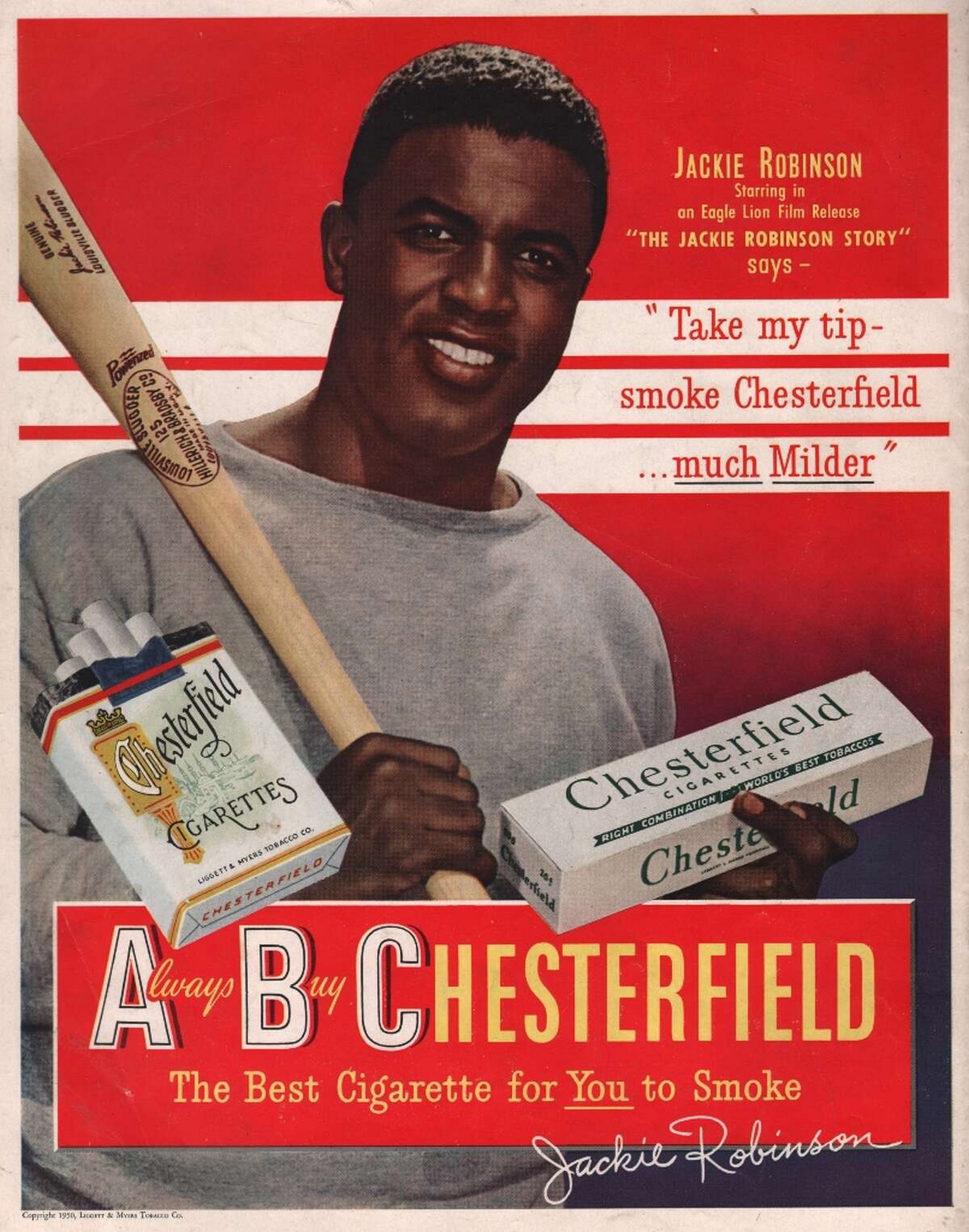 1950 Jackie Robinson. Take my tip – smoke Chesterfield … much Milder Source: Stanford School of Medicine