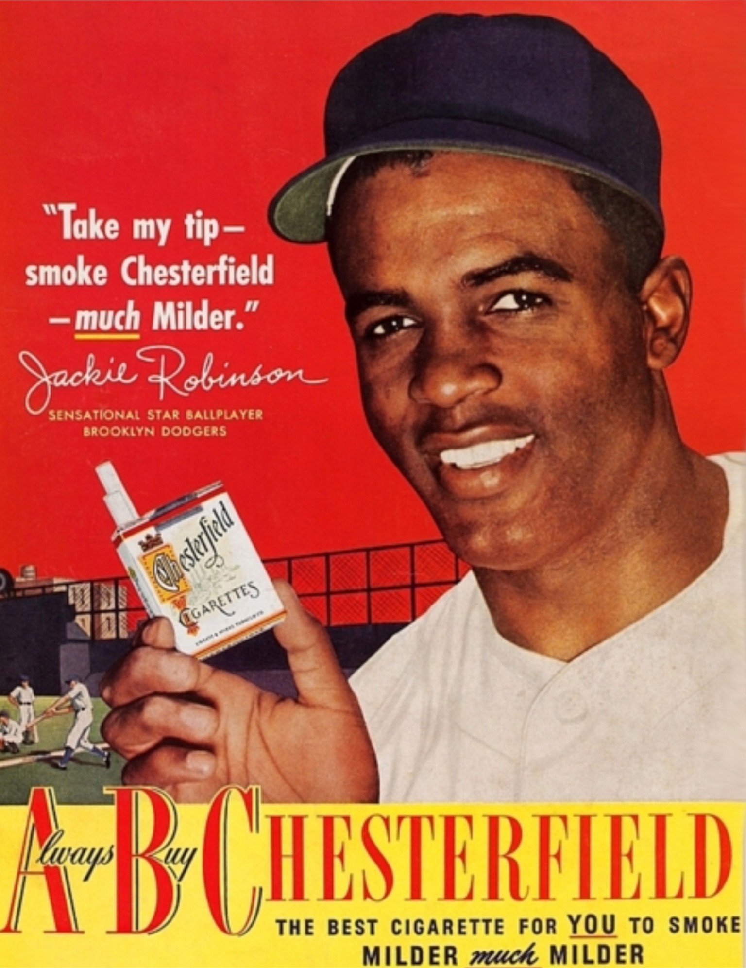 1950 ‘Take my tip – smoke Chesterfield – much Milder.’ Jackie Robinson Source: Stanford School of Medicine