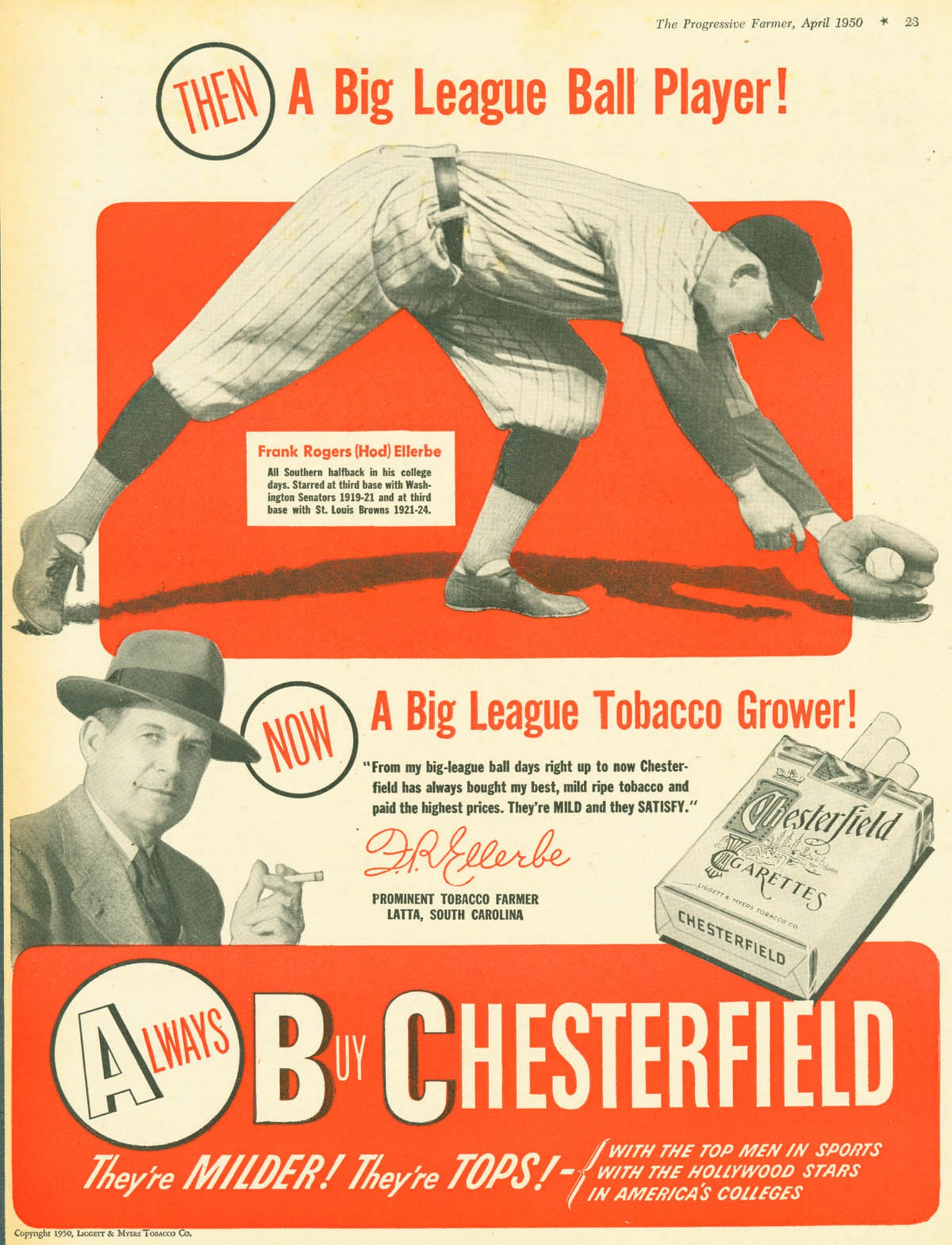 1950 The A Big League Ball Player! Now A Tobacco Grower! Chesterfield Source: Stanford School of Medicine