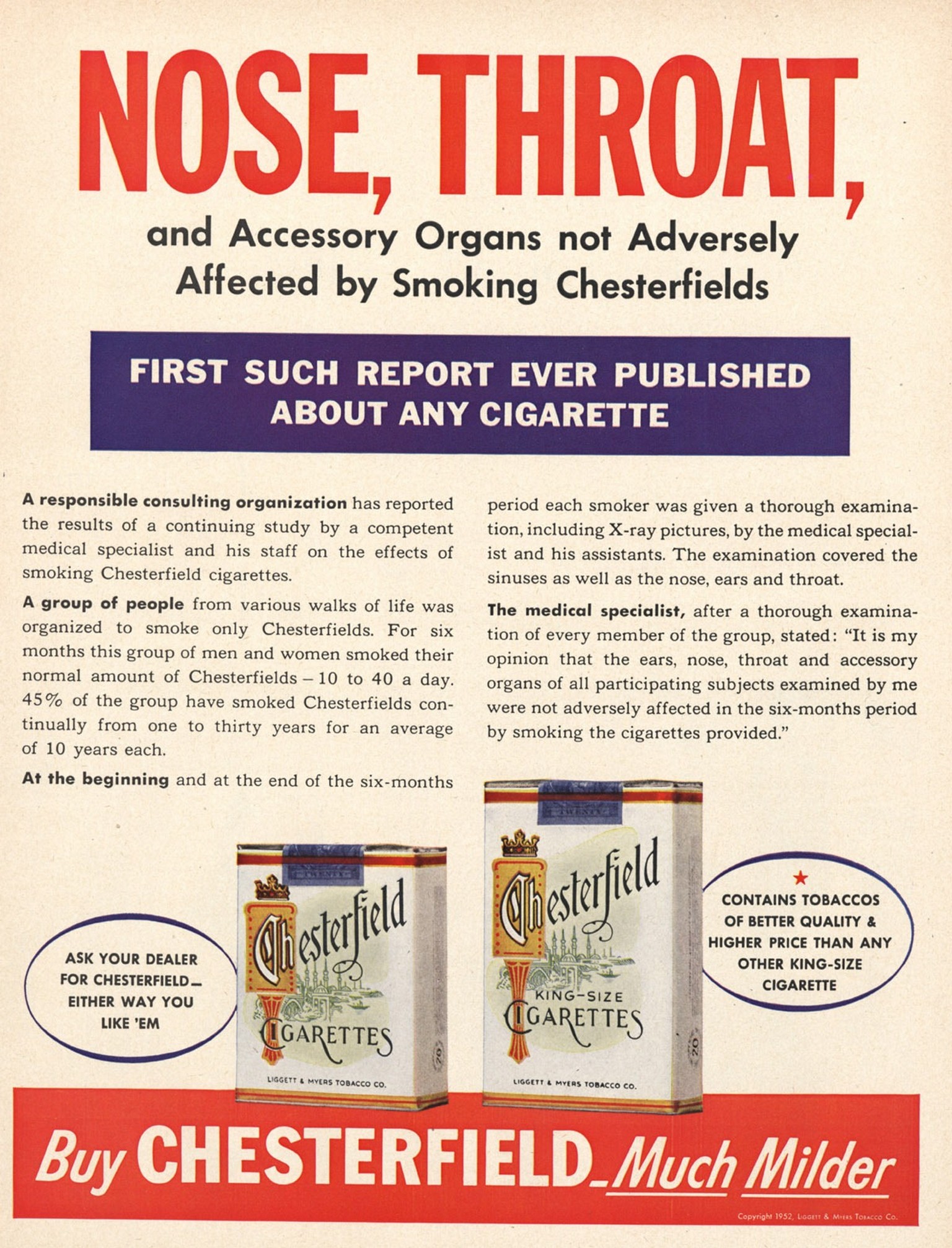 1952 Nose, Throat, and Accessory Organs not Adversely Affected by Smoking Chesterfield