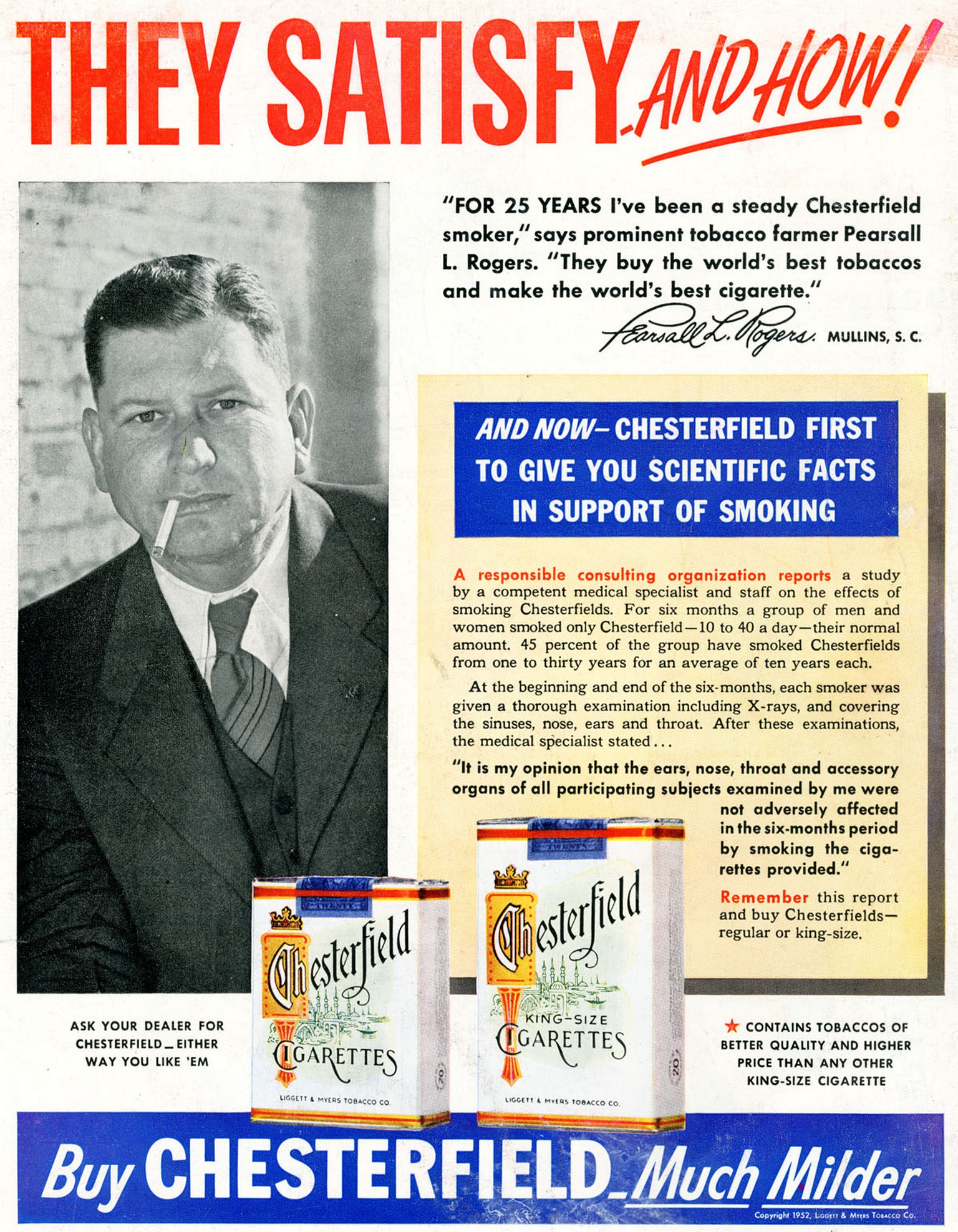 Main » Smoking » Chesterfield Ad and Poster Collection » 1952 They Satisfy – And How! Pearsall L. Rogers
