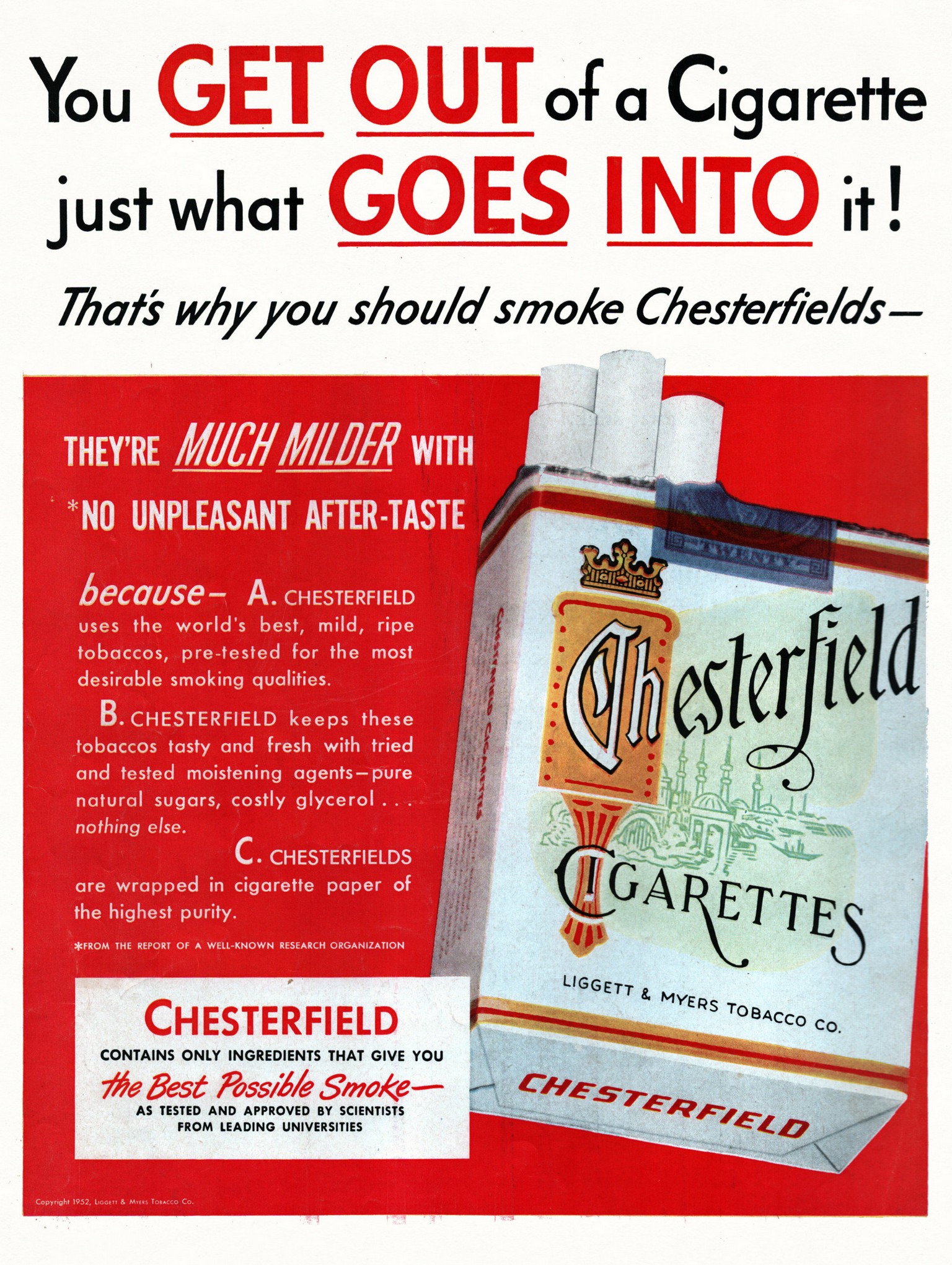 1952 You Get Out of a Cigarette just what Goes Into it! That’s why you should smoke Chesterfields