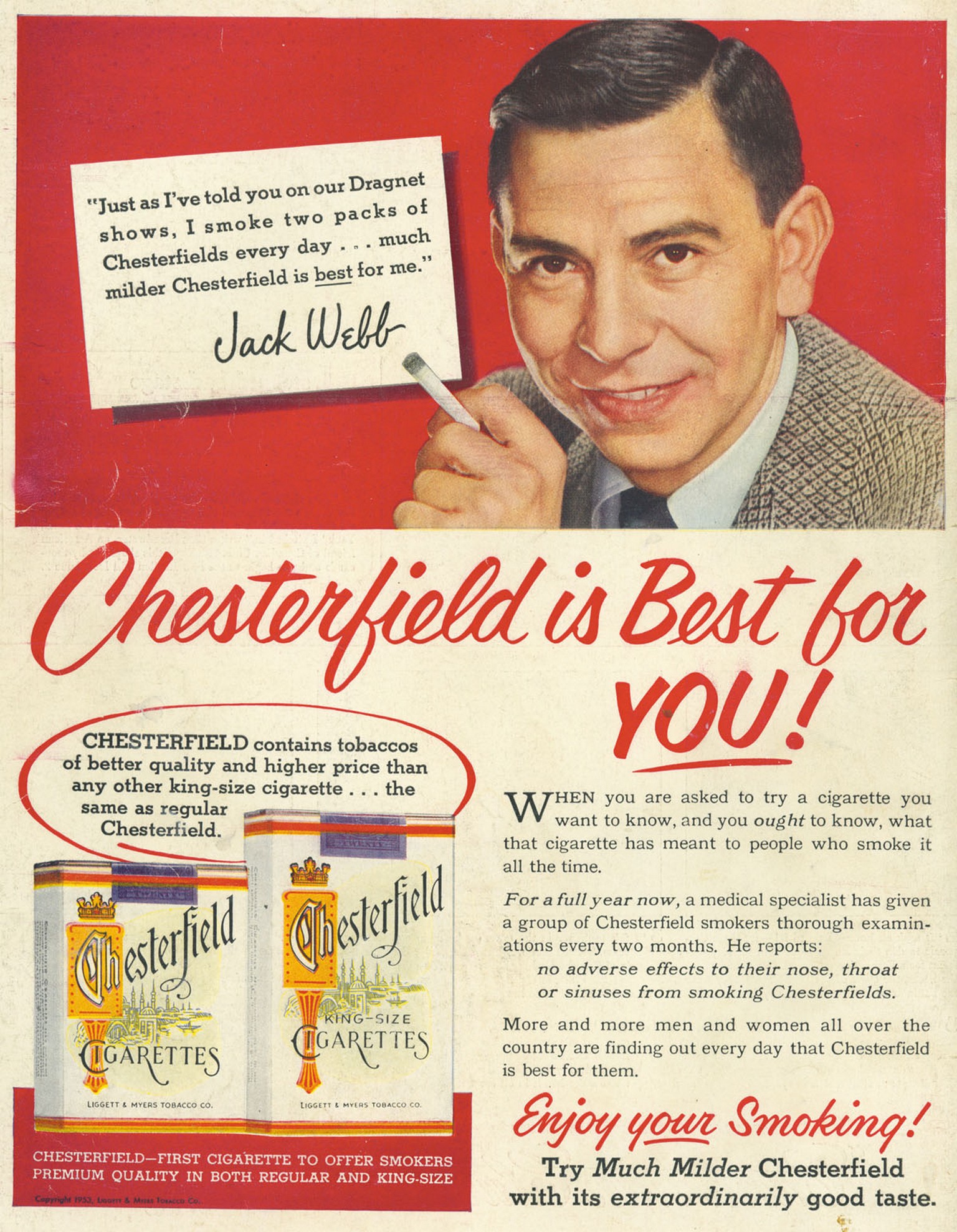 Main » Smoking » Chesterfield Ad and Poster Collection » 1953 Chesterfield is Best for You! Jack Webb