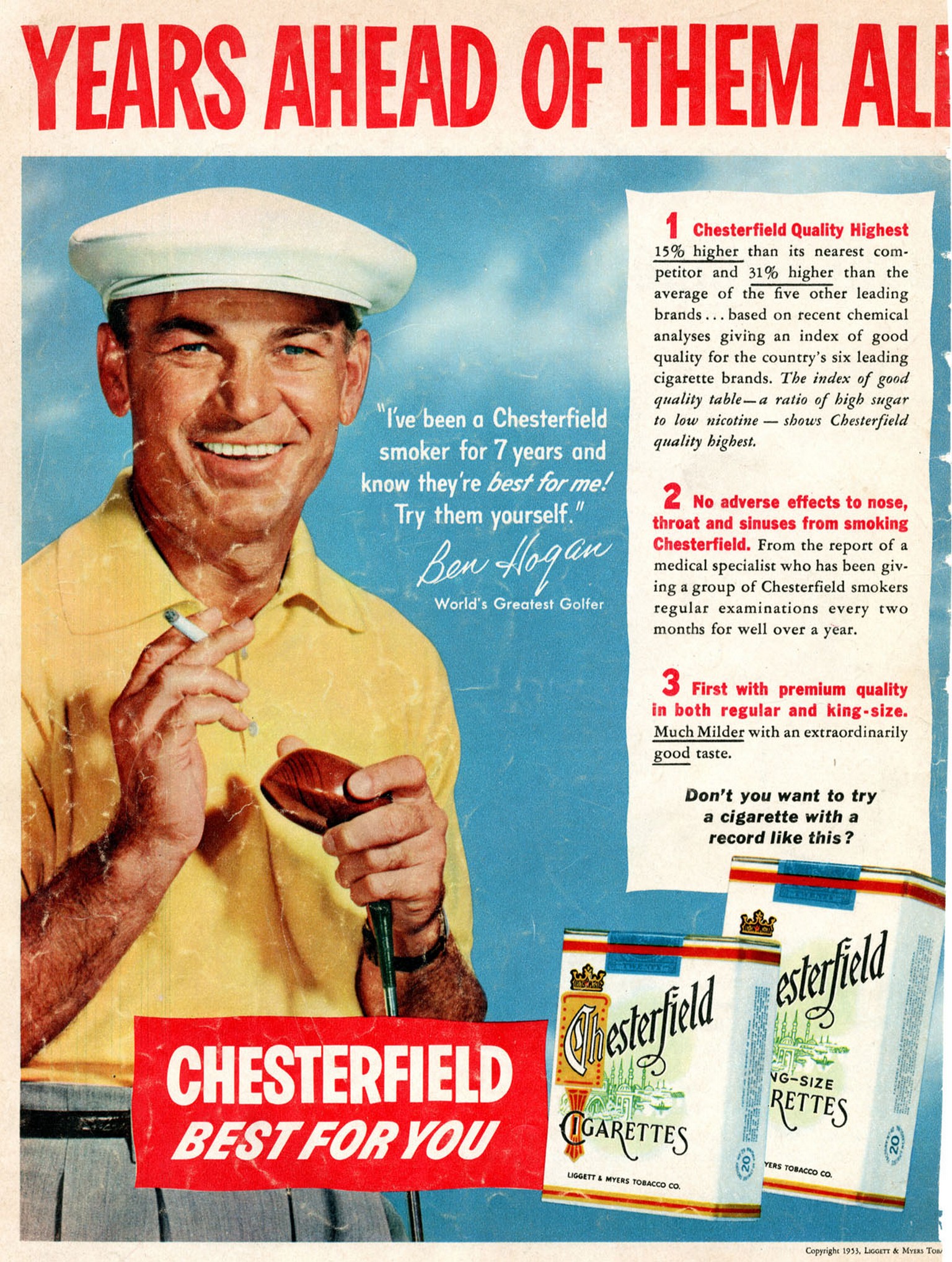 1953 Years Ahead Of Them All. Chesterfield Best For You. Ben Hogan Source: Stanford School of Medicine