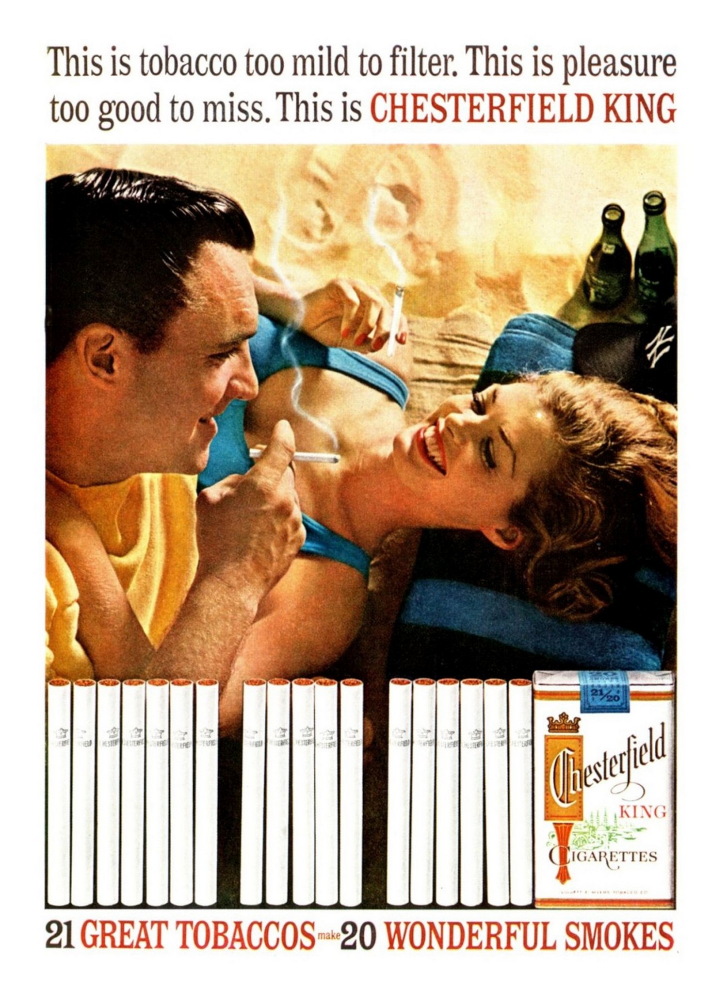 1962 This is tobacco too mild to filter. This is pleasure too good to miss. This is Chesterfield King (2)