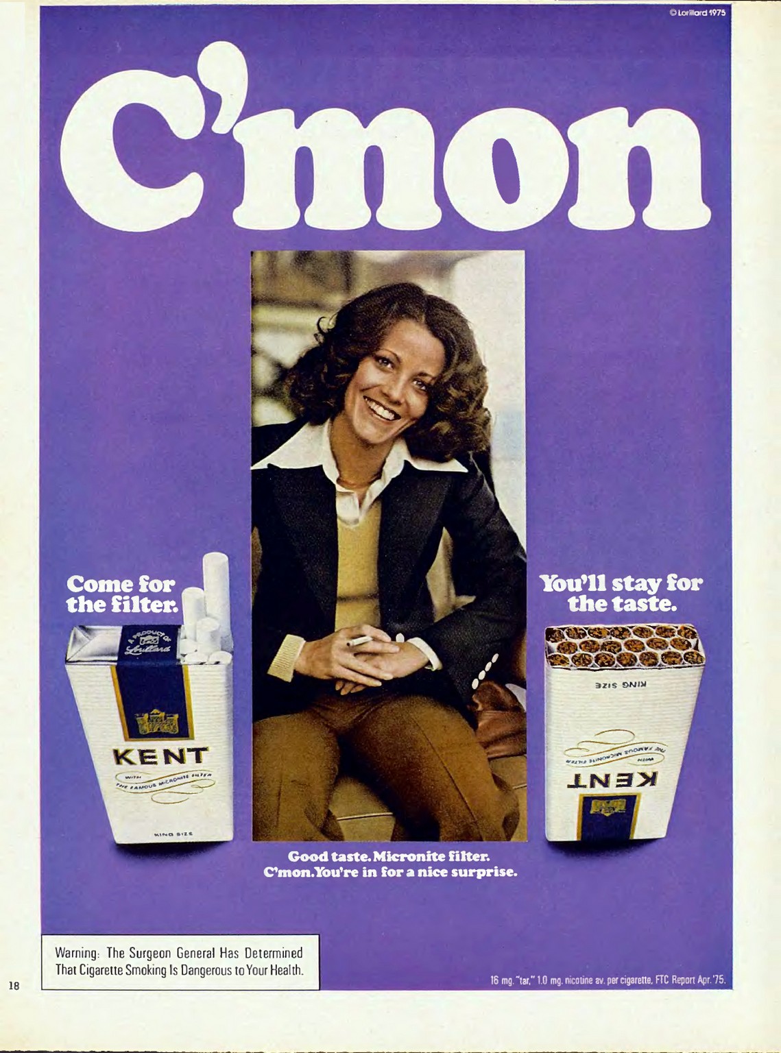 1976 C’mon. Come for the filter. You’ll stay for the taste. Kent