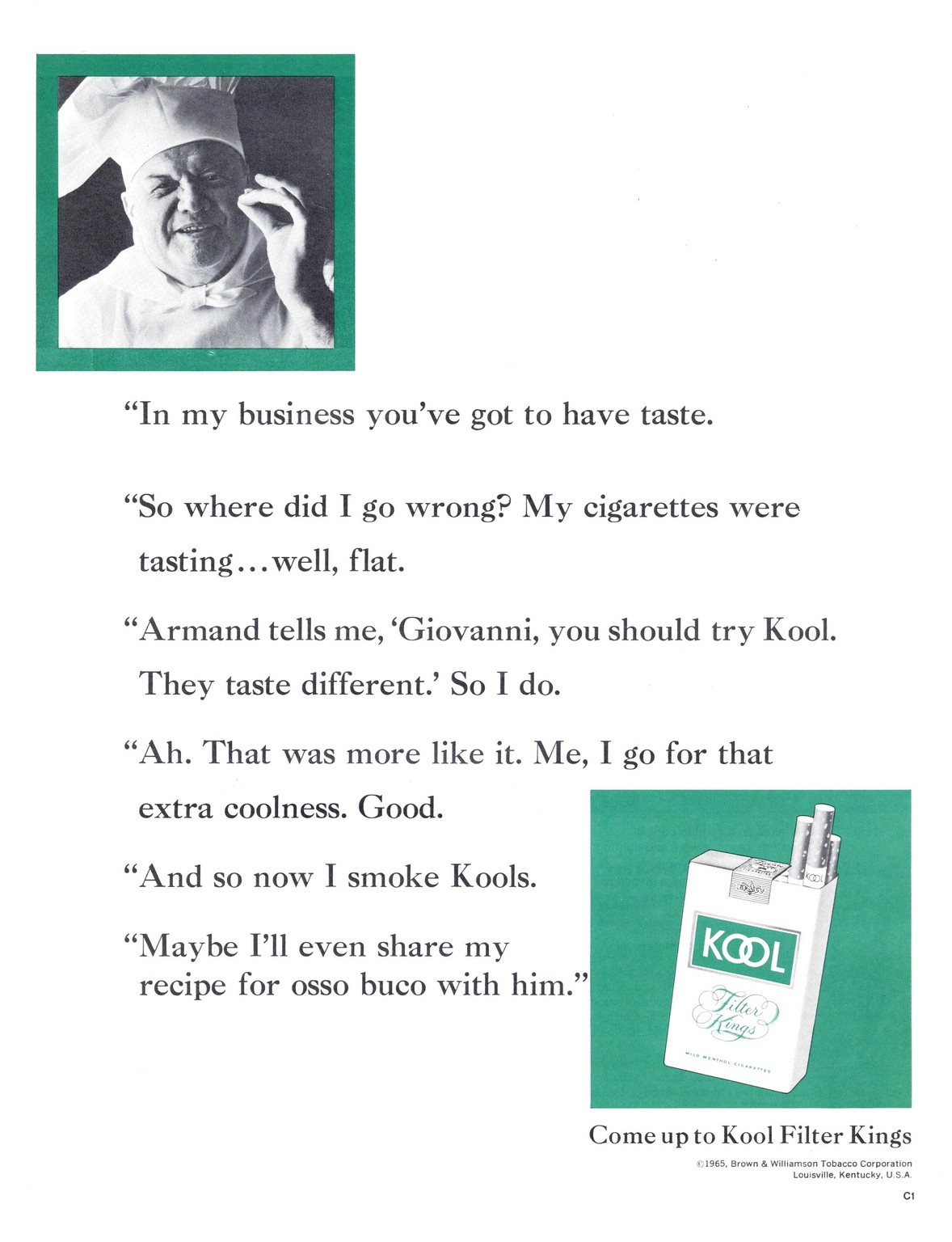 1966 In my business you’ve got to have taste. … Come up to Kool Filter Kings
