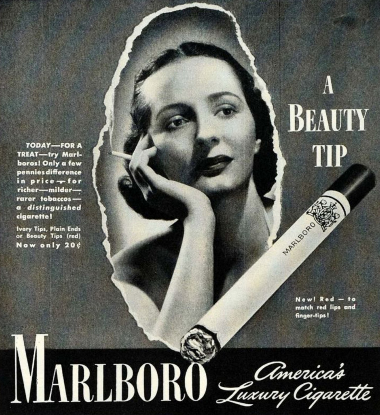 Main » Smoking » Marlboro Ad and Poster Collection » 1935 A Beauty Tip. Marlboro America’s Luxury Cigarette