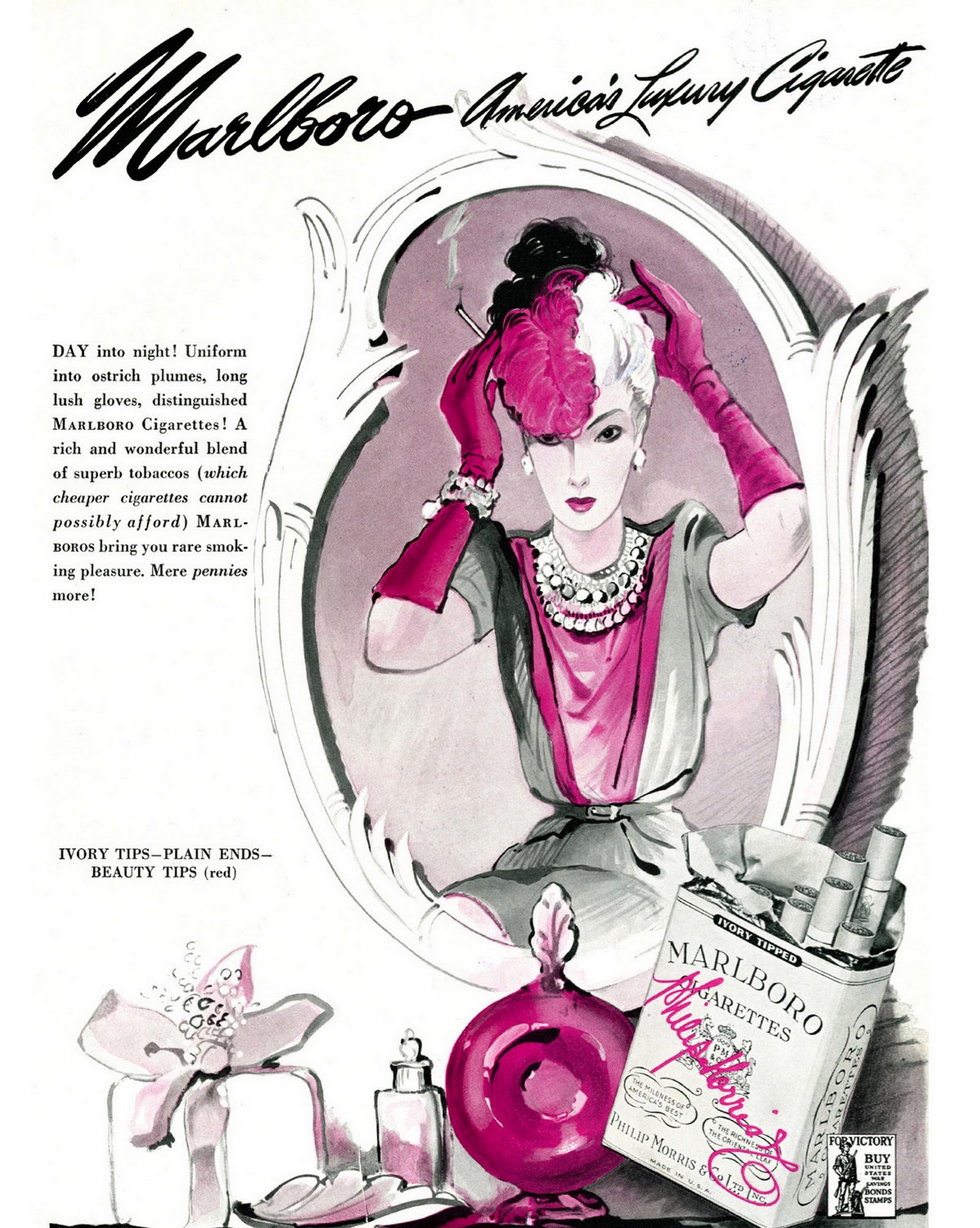 Main » Smoking » Marlboro Ad and Poster Collection » 1942 Marlboro America’s Luxury Cigarette. Day into night!