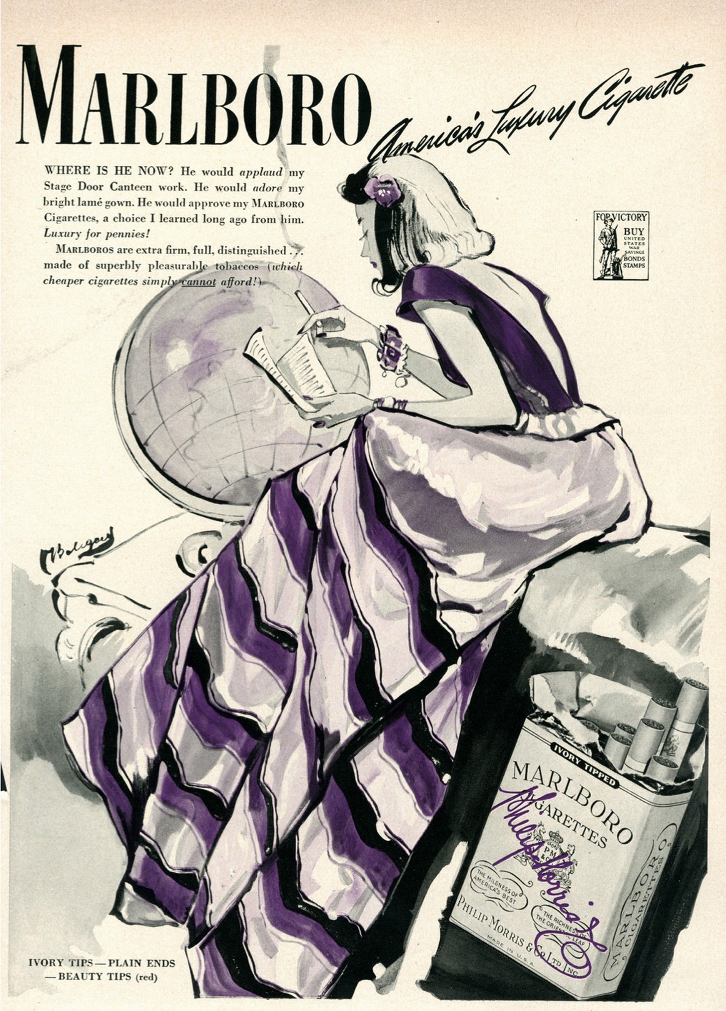 Main » Smoking » Marlboro Ad and Poster Collection » 1942 Marlboro America’s Luxury Cigarette. Where Is He Now