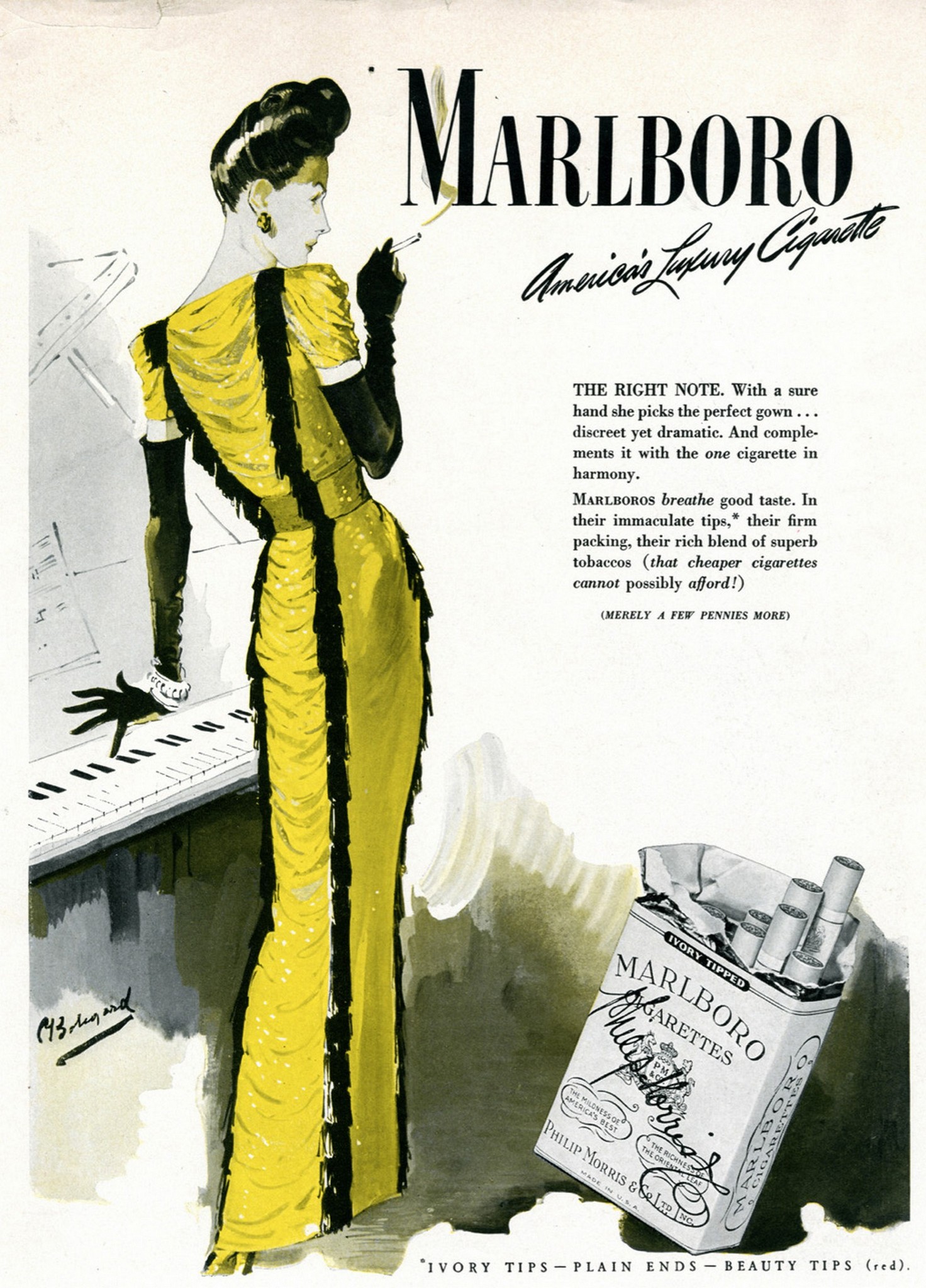 Main » Smoking » Marlboro Ad and Poster Collection » 1943 Marlboro America’s Luxury Cigarette. The Right Note