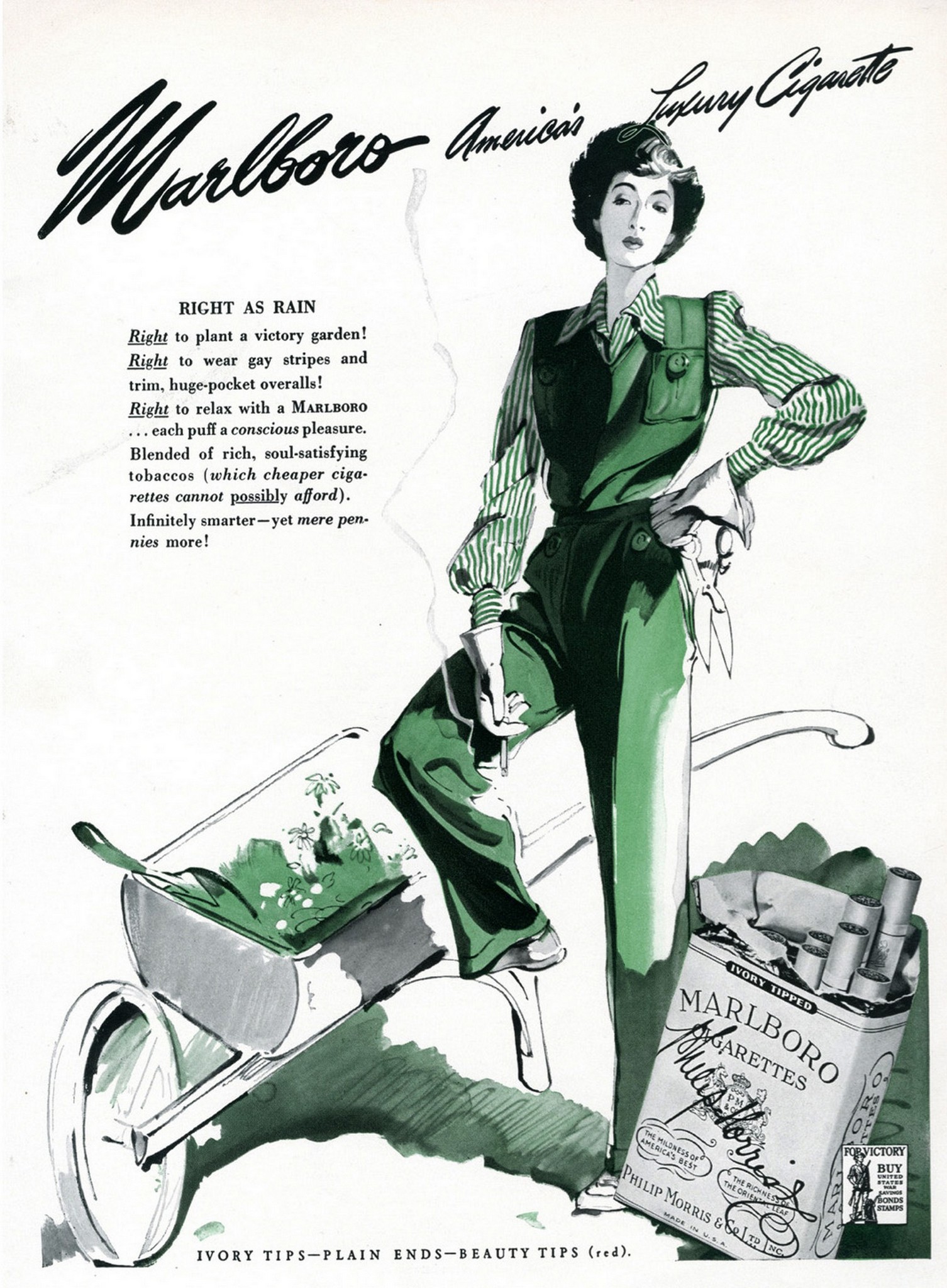 Main » Smoking » Marlboro Ad and Poster Collection » 1945 Marlboro America’s Luxury Cigarette. Right As Rain