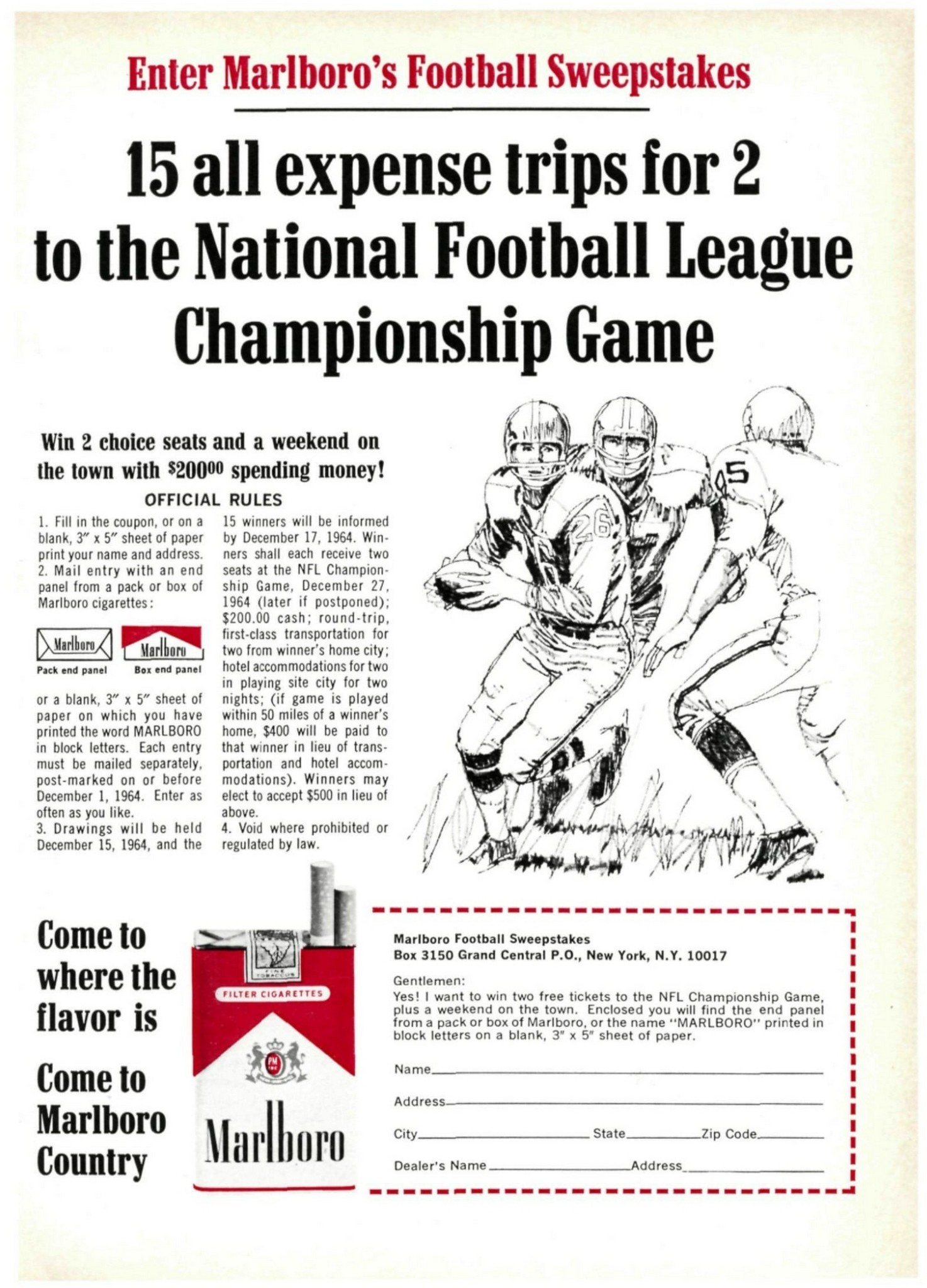 Main » Smoking » Marlboro Ad and Poster Collection » 1964 Enter Marlboro’s Football Sweepstakes
