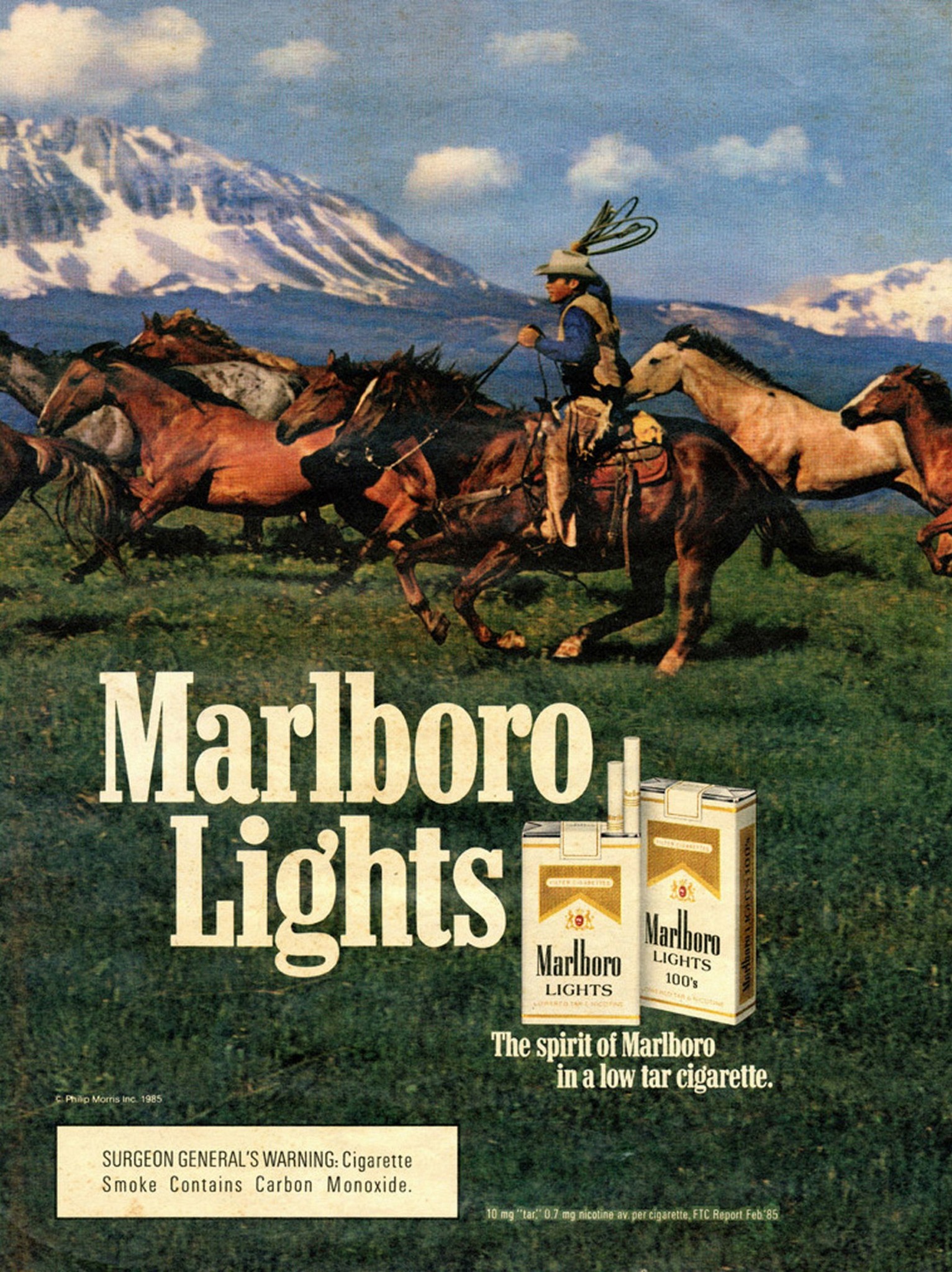 1985 Marlboro Lights. The spirit of Marlboro in a low tar cigarette Source: Stanford School of Medicine