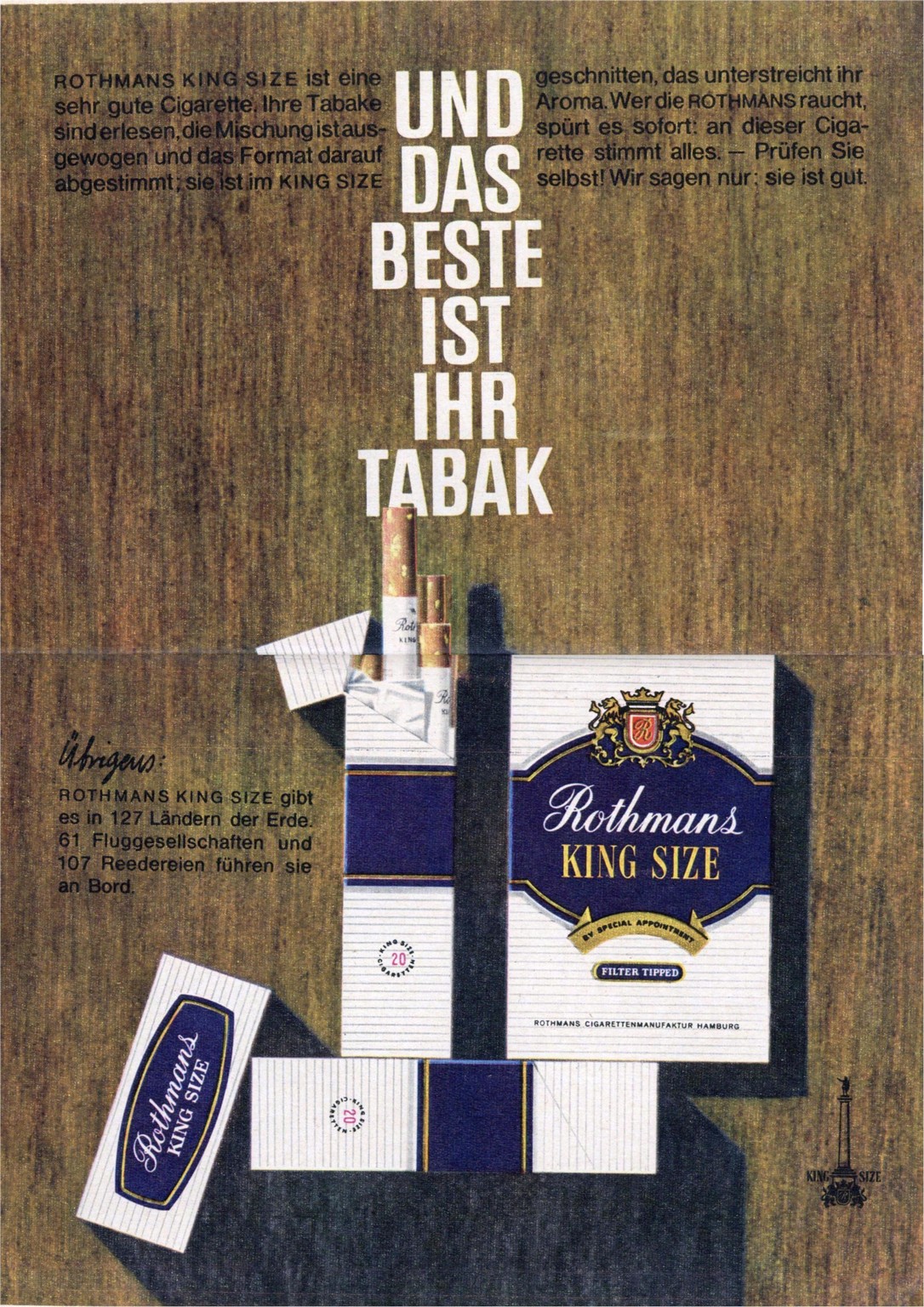 1961 Und Das Beste Ist Ihr Tabak. Rothmans King Size