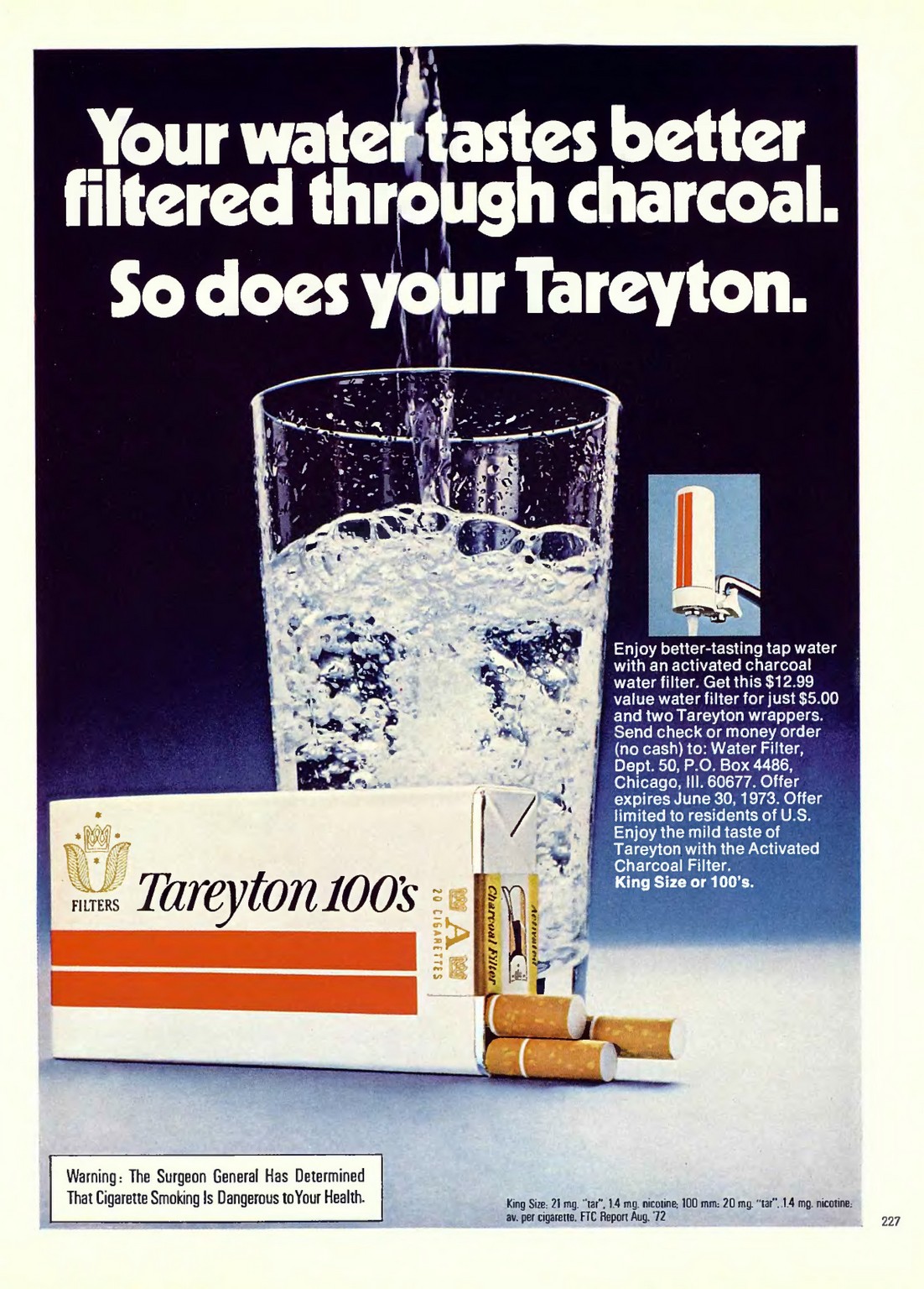 1972 Your water tastes better filtered through charcoal. So does your Tareyton