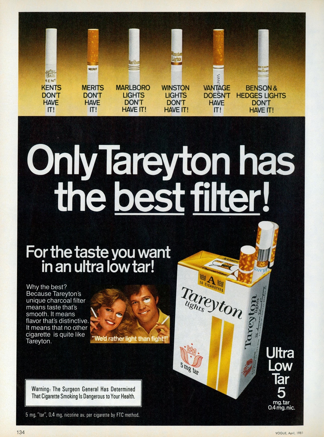 1981 Only Tareyton has the best filter!