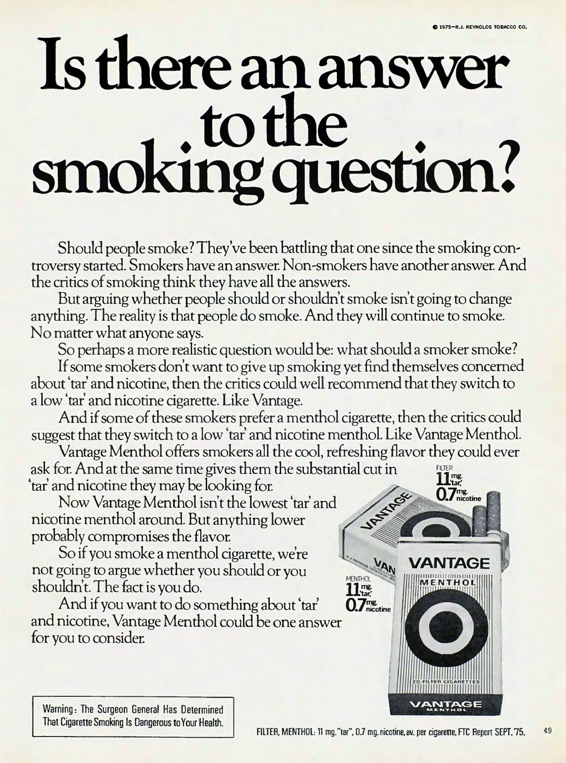 1976 Is there an answer to the smoking questions. Vantage