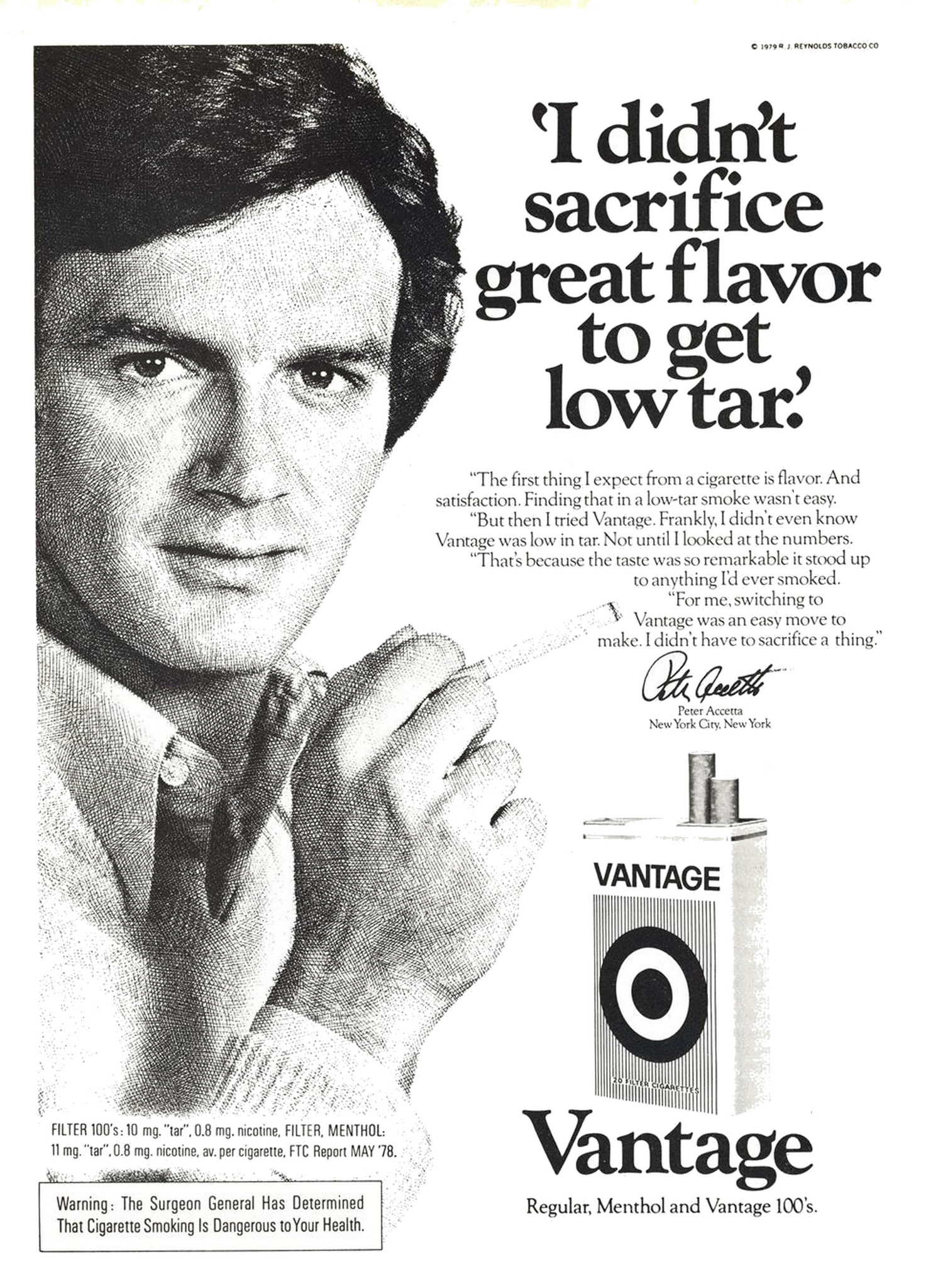 1979 'I didn't sacrifice great flavor to get low tar'. Vantage