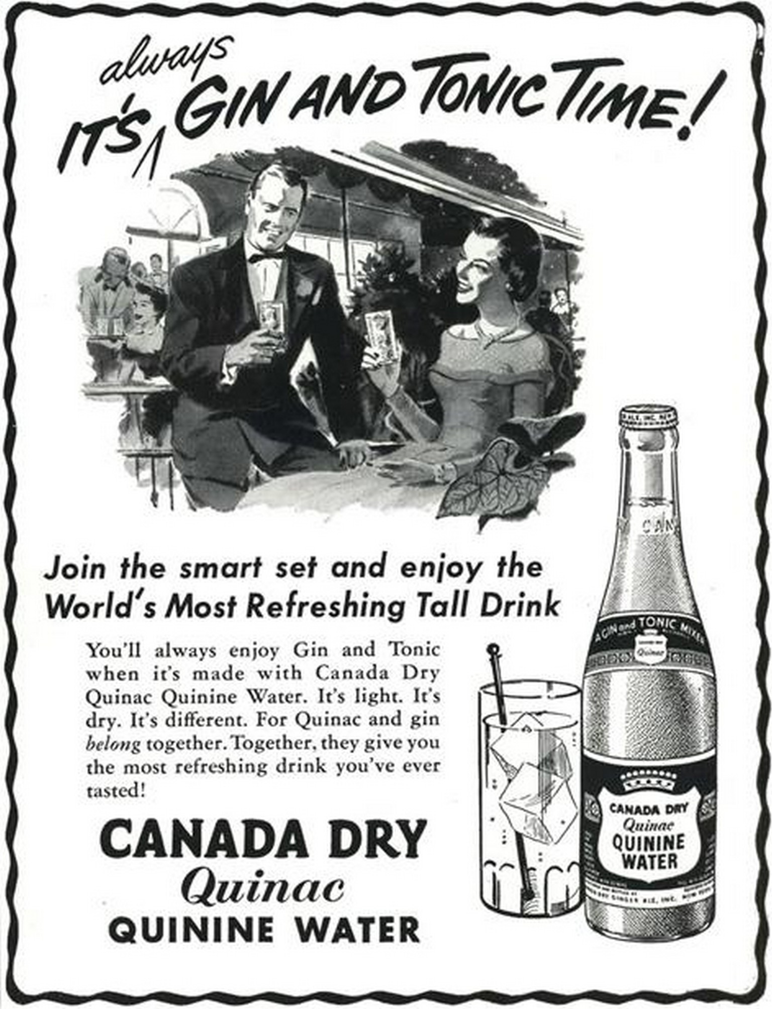 1950 always It’s Gin And Tonic Time! Canada Dry Quinac Quinine Water