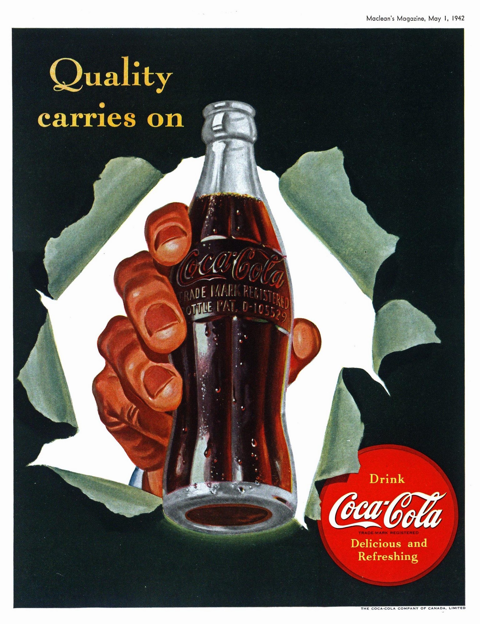 Main » Soft Drinks » Coca-Cola Ad and Poster Collection » 1942 Quality carries on. Drink Coca-Cola