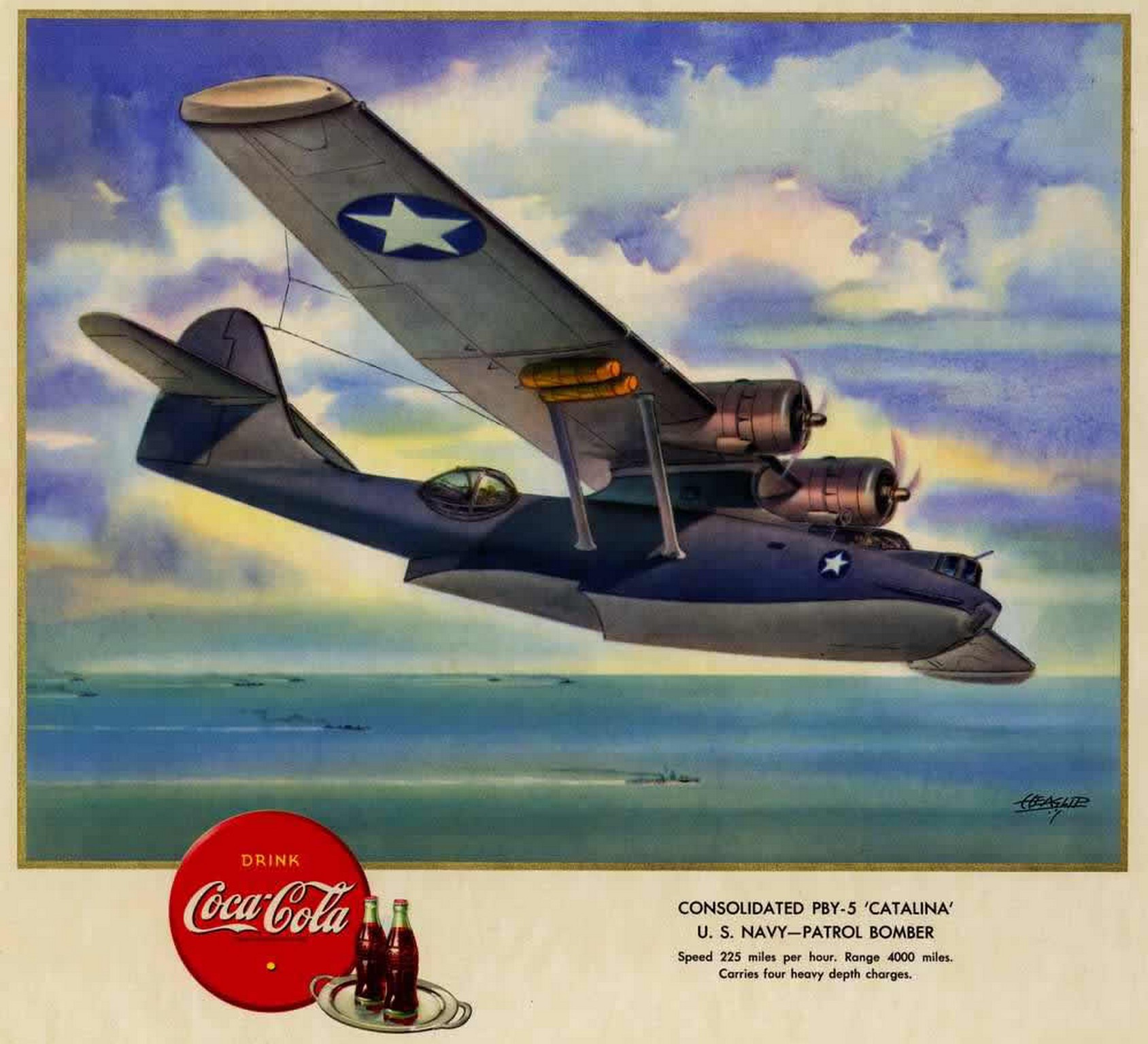 Main » Soft Drinks » Coca-Cola Ad and Poster Collection » 1943 Drink Coca-Cola. Consolidated PBY-5 ‘Catalina’ U.S. Navy – Patrol Bomber (1)