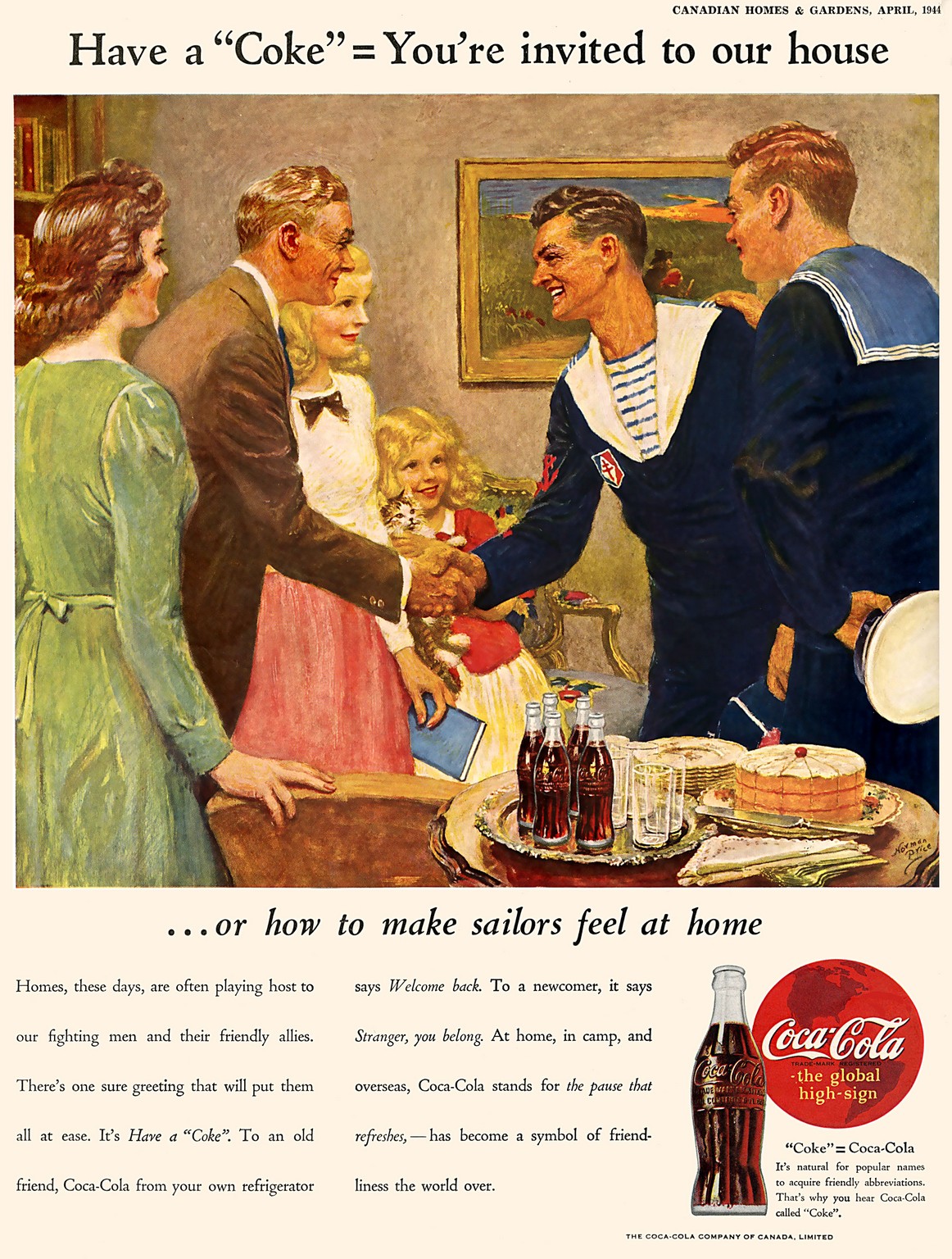 1944 Have a ‘Coke’ = You’re invited to our house … or how to make sailors feel at home