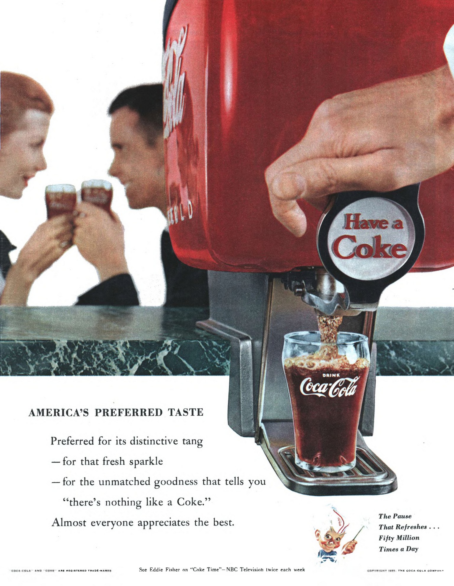 Main » Soft Drinks » Coca-Cola Ad and Poster Collection » 1955 America’s Preferred Taste. Drink Coca-Cola